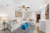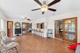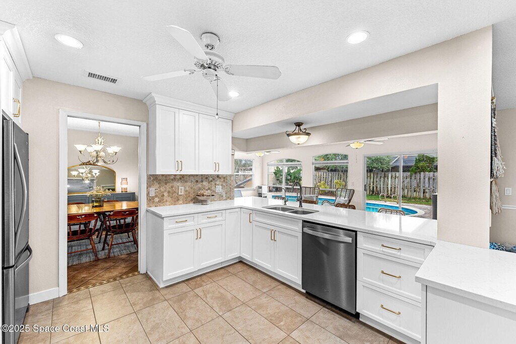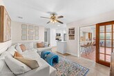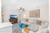 Just a short walk from parks,athletic fields,and the beach,this Amherst Gardens home delivers effortless coastal living with a private saltwater pool and a bright,functional layout. Tile flooring runs throughout the main living areas of this 3-bed,2-bath interior,where arched windows,natural light,and an easy flow connect the foyer,family room,dining space,and updated kitchen. The living room and oversized flex room offer multiple gathering zones with wide views of the pool and backyard. Outside,a resurfaced saltwater pool (2020) and expansive paver patio create a private outdoor retreat,complete with tropical landscaping and a separate fire pit area. Additional upgrades include a 2019 electrical panel,2021 A/C + compressor,2022 air ducts,2022 water heater,a newer metal roof with 2023 flat roof resurfacing,new PVC irrigation well,and RV hookup. No HOA. A-rated schools.