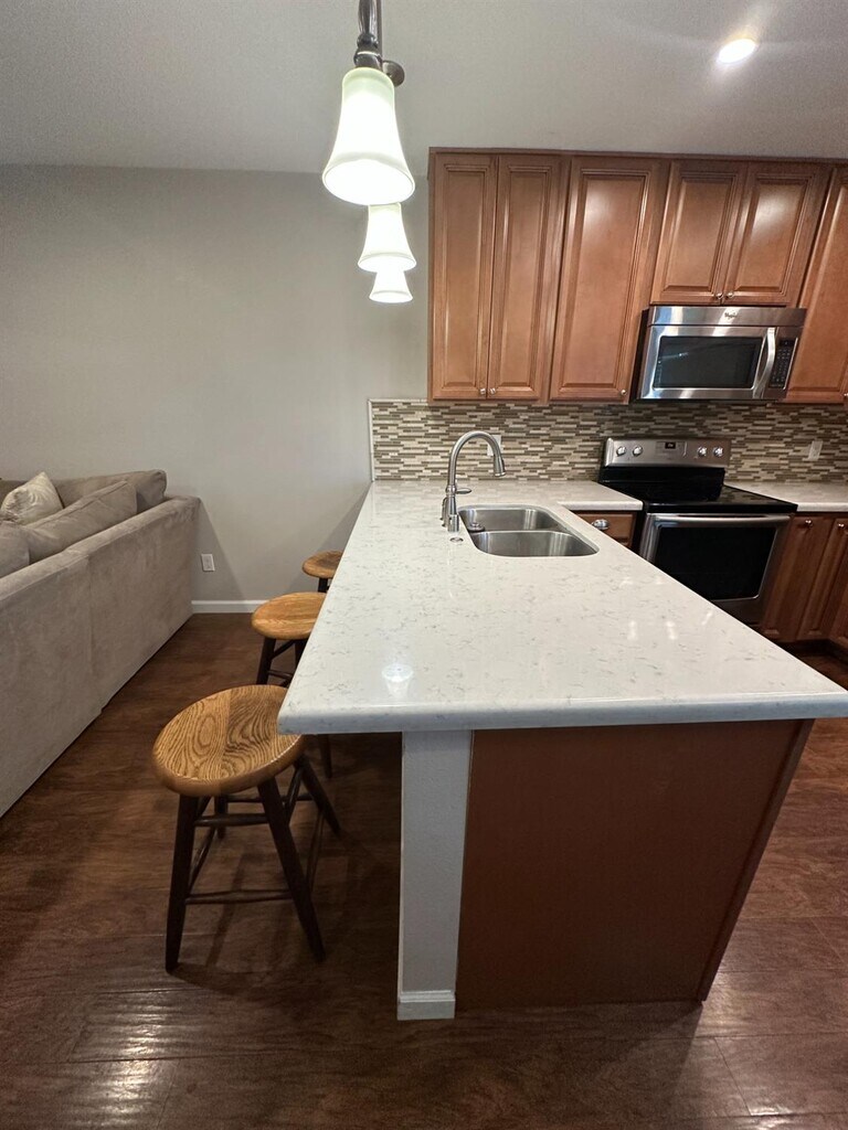 A rare find in the Marie Antoinette community close to Fig Garden Village! This upstairs condo has 2 bedrooms and 2 bathrooms and has been updated throughout. Granite countertops in the kitchen, updated bathrooms and vinyl plank flooring throughout. There is also a combo washer/dryer unit inside (rare in this community!). Each bedroom has a ceiling fan and the primary bedroom has a en-suite bathroom. The resident will have access to the community pool. Fantastic location, close to Fig Garden Village, freeway access, popular dining spots and more! Renter's insurance is required.