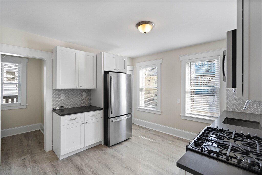 Recently renovated luxury top floor 3 bedroom apartment available March 1 or April 1! Beautifully updated kitchen with white shaker cabinets,quartz countertops,and sleek stainless steel appliances. The kitchen also features lovely quartz countertops,herringbone tile backsplash and a high-end Kraus faucet andsink. The unit was recently painted and has gleaming refinished hardwood floors. Enjoy the outdoors on your spacious front and back decks! Each largebedroom also has a very large closet with plenty of storage. Shared laundry in the basement. Less than 10 minutes to the Shawmut MBTA station viaenchanting Waldeck St and Melville Ave. Easy street parking. MLS# 73474624