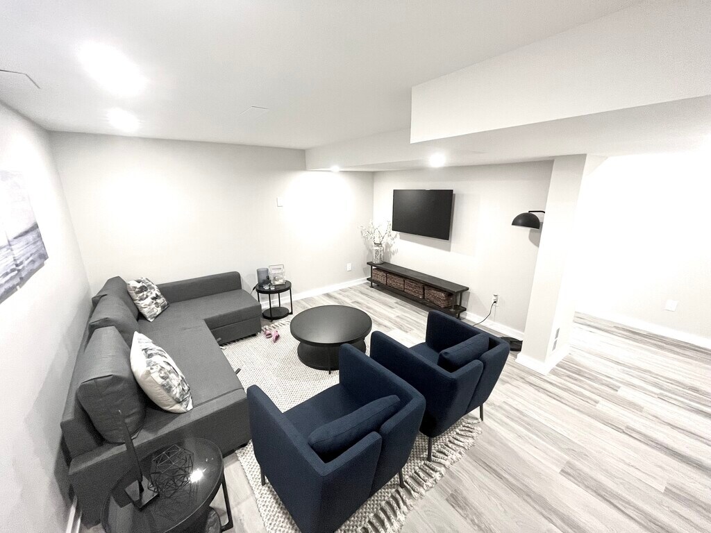 Welcome to our brand-new, one-of-a-kind basement suite nestled in the heart of a vibrant up-and-coming neighborhood. Located just off the main road of Bank Street in the new Pathways community, Enjoy the comfort of no additional bills, free wi-fi and a fully furnished space. Open Concept Kitchen: - Fully equipped with stainless steel appliances, butcher-block countertop, ample cabinetry, and kitchen table for 2 - Comes equipped with fridge, microwave, stove, and dishwasher - Utensils and accessories included (pots & pans, plates, mugs, glasses, etc.) Bathroom: - Comes with modern fixtures, washer and dryer, stand-up shower with removable shower head, 50" vanity with lots of storage, toilet and large mirror. Open Concept Living Room: - Living space comes with pull-out couch for guests, a 50" TV and plenty of storage Bedrooms: - Bedroom 1 comes with king bed, closet, desk and an enlarged window (53" x 26") - Bedroom 2 comes with double bed, closet and an enlarged window (53" x 26"). One of the best features of this basement is its separate entrance from the garage, fully equipped with key-pad door entry. Additionally, a designated parking spot is available on private driveway. Beyond the suite itself, the location offers an incredible lifestyle. Situated right beside an up-and-coming park and plenty of lush green space. The surrounding neighborhood is a thriving community with a large range of amenities, and schools nearby. Be the first to rent this new basement suite!