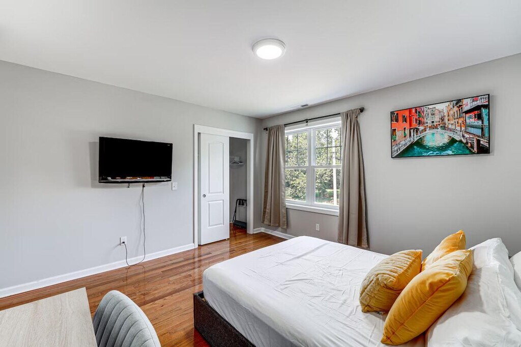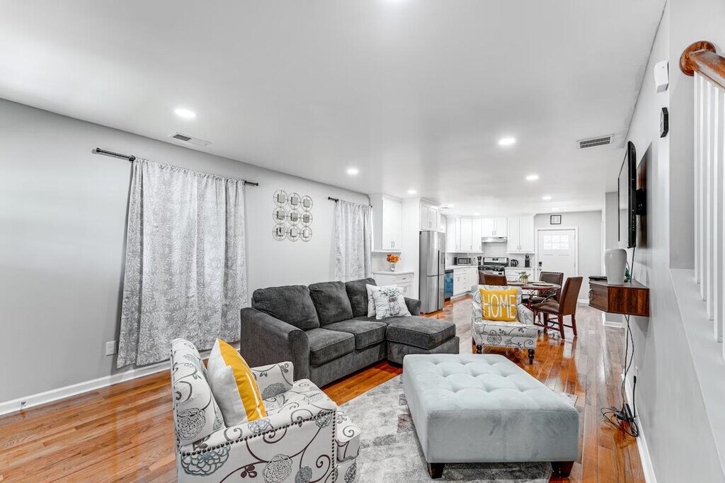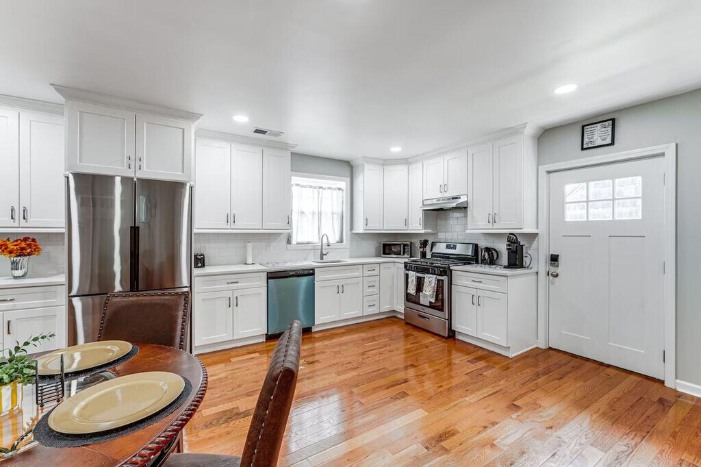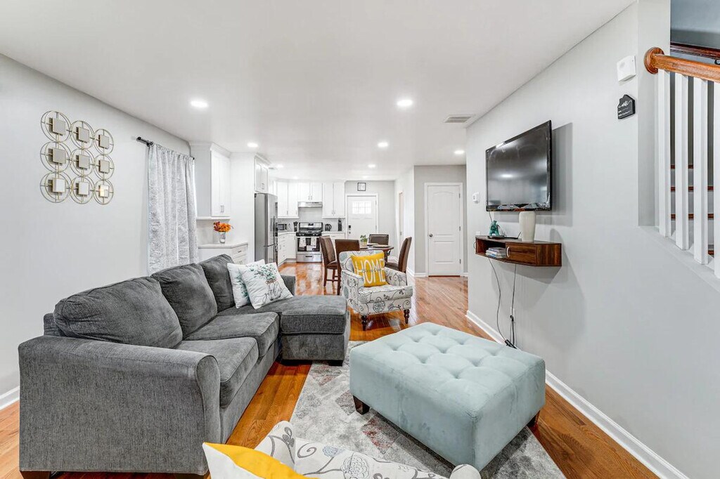 Settle in and feel at home in this Bridgeport vacation rental! This 2-story home requires exterior stairs to enter. While it offers a half bathroom on the 1st floor, interior stairs are required to access the bedrooms on the 2nd floor. This 3-bedroom, 1.5-bath home has all the comforts you'll need to enjoy your extended getaway. The kitchen is equipped with a stove/oven, refrigerator, dishwasher, Keurig coffee maker (starter coffee provided), dishware and flatware, cooking basics, microwave, blender, toaster, toaster oven, trash bags and paper towels. You'll also have access to free Wi-Fi, central heating and A/C, a washer and dryer, laundry detergent, linens and towels, and a hair dryer. Whether you'll be commuting to a nearby hospital or working remotely, this apartment is ideally located. Visit Connecticut's Beardsley Zoo or relax on the beach at Seaside Park, both a short distance away. The apartment is also located 4 miles from the beach and 1 mile from St. Vincent's Medical Center. Smoking and vaping are prohibited. Events, parties, and large gatherings are not allowed. Guests must be at least 21 years old to book. There is another duplex unit on-site that shares the backyard; other tenants may be present during your stay. Your safety matters. This property features 1 exterior security camera located above the front door, facing the front yard/driveway. It does not look into any interior spaces. The camera records video and sound when activated by motion. Includes 4 Smart TVs and 3 laptop-friendly workspaces. [SI]
