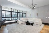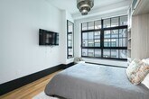 Nestled in one of DUMBOs prime buildings, sits this approx. 1,287+/- sq.ft., two bedroom, two bathroom loft. This sprawling floorplan offers beautiful loft offers wide plank herringbone hardwood flooring, soaring ceilings, and oversized picturesque factory casement windows. Upon entry, you will be immediately submersed in natural sunlight and will be impressed by the size of the living, dining, and kitchen areas. The living/dining room can comfortably be arranged in many ways to best fit anyone’s vision and design to make this their own. In the chefs kitchen, there are top of line appliances such as Gaggeneau refrigerator, Gaggeneau stove and range, dishwasher, built-in wine, La Rochelle Gris marble slab countertops, and custom cabinetry by Aster Cucine. All areas are combined in perfect harmony to either host guests and entertain or for comfortable everyday living. The luxurious primary bedroom has a custom built-in wall of closets, an additional custom built in walk-in closets, motorized solar shades and direct access to the en-suite bathroom. The spa-quality finishes are on full display and include a double vanity marble sink, a rainfall shower, deep soaking tub, and built-in speakers. The second bedroom is just adjacent to the second full bathroom, is generous in size and features its own large custom-built closet, and a Murphy bed with custom shelving which provides multifunctional capabilities to turn this room into a bedroom or home office in just moments. Rounding out this special and meticulously maintained home is motorized solar shades on all windows, in-unit W/D, central A/C and tons of storage options throughout. Originally an industrial warehouse prior to its conversion in 2016, 51 Jay Street comprises 75 units across 7 stories and features a fully attended lobby with polished concrete flooring and steel tracks inspired by the original rails that carried goods throughout the building. Additional amenities include a full-time doorman, fitness center, residents’ lounge, children’s’ playroom, pet washroom, bicycle storage, parking, and an expansive private rooftop kitchen with areas for relaxing and entertaining, including an outdoor kitchen. 51 Jay Street is conveniently located only two blocks from Brooklyn Bridge Park and is in close proximity to iconic Washington Street, Jane’s Carousel, Time-Out Market. Multiple transportation options are at your disposal, which include the A, C, and F trains and New York East River Ferry/Water Taxi, simplifying life for the everyday commuter. Enjoy historic cobblestone streets, eclectic stores, cozy cafes, acclaimed restaurants, renowned art galleries, and all that DUMBO has to offer. Tenant Credit Check Fee $150 per applicant/occupant/guarantor Tenant Move In Deposit $1,000 Tenant Move In Fee $500 Rental Terms: Monthly: $9,500