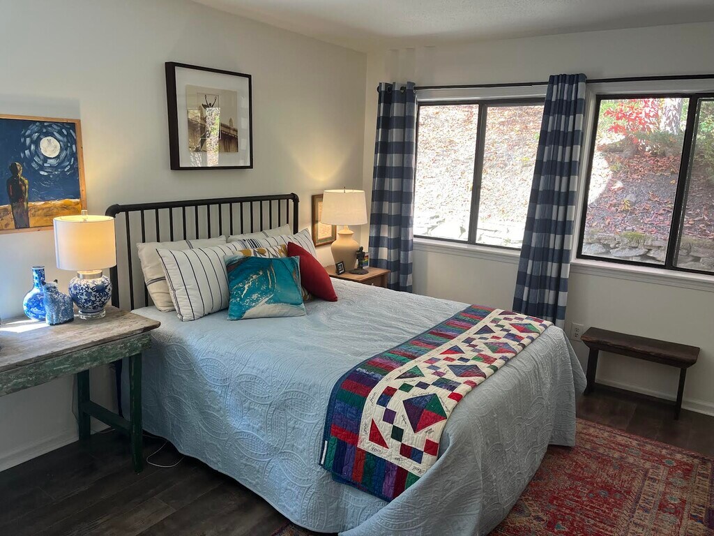 Laurel Park/Lake Rhododendron area of Hendersonville. Close to downtown and Flat Rock. Ground floor 2 bedroom/2 bath single story unit with easy access. Open floor plan leads out to a beautiful private back porch that is screened in. Washer/dryer included. Unfurnished and will be available Dec. 1. Pets negotiable. Tenant pays utilities. Landscaping provided. One year old kitchen appliances. New HVAC. Two new walk-in showers are easy to access. Please let RentWNC know if you're interested in this home. .