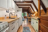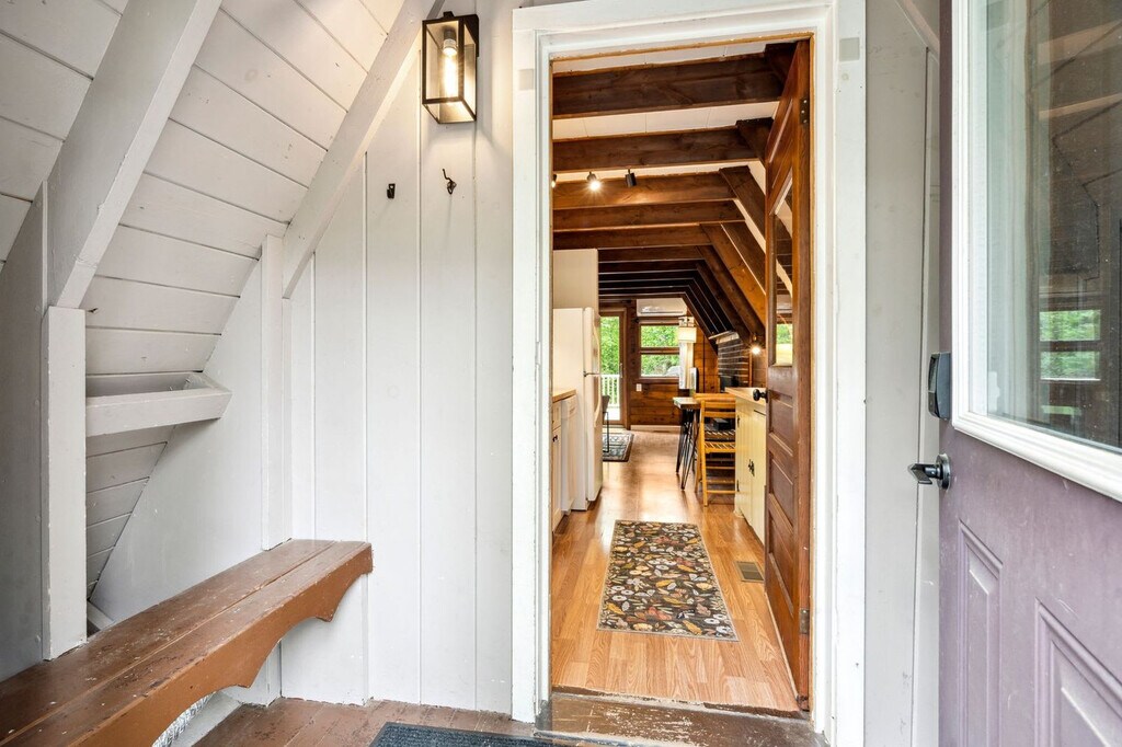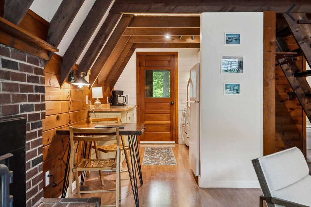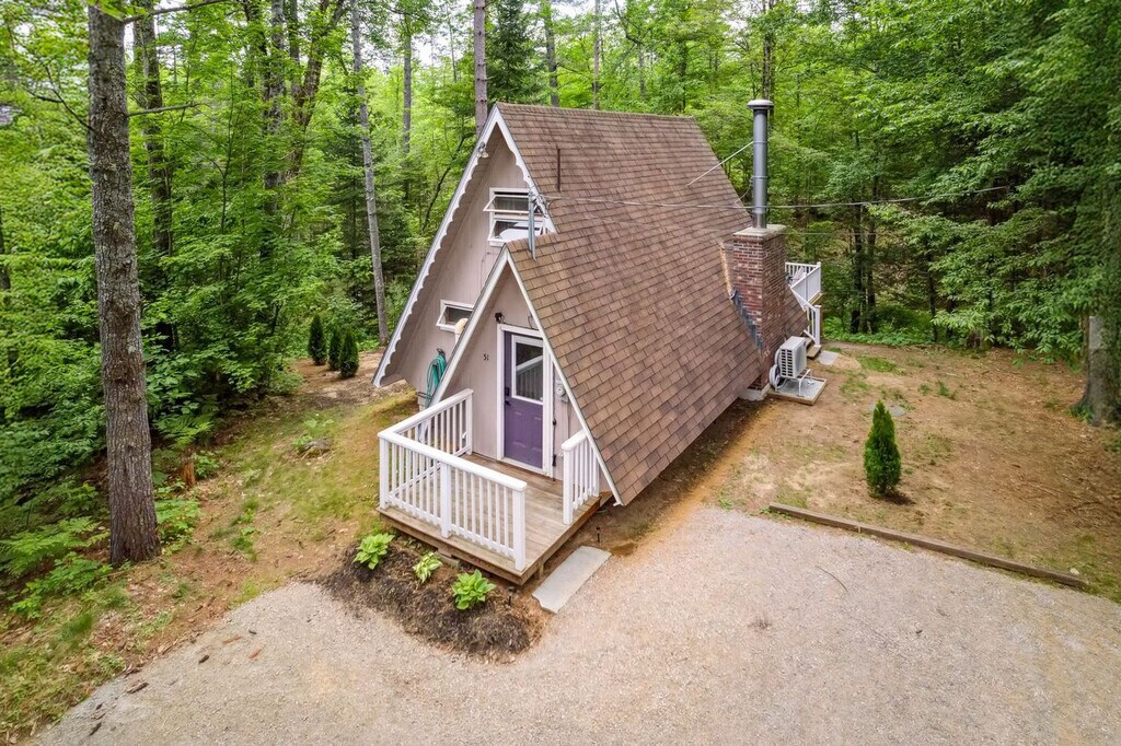 Feel at home in this adorable A-frame nestled on a quiet neighborhood street. This home is ideal for up to 4 guests and has very steep stairs to the bedrooms, which may not be ideal for guests with mobility challenges. This small but perfect getaway features an updated kitchen fully equipped with all the essentials, including a smaller-than-standard dishwasher and a small 20" electric oven and range. A drip coffee maker with drip coffee is provided. The living room has a smart TV and access to the deck and hot tub. The bathroom has a standing shower and an in-unit washer and dryer. Enjoy mini-split heating and cooling, and a large deck overlooking a stream in the ravine. A $100 fee per pet applies and will be charged through our software after the booking is confirmed. Located just 10 minutes from North Conway and Fryeburg, this home is also minutes from the White Mountain National Forest, Diana's Baths, Cranmore Mountain, and the Kancamagus Highway. The home is a 10-15 minute drive to the restaurants and shops of downtown North Conway and a 10-12 minute drive to the closest grocery store and drug stores. Conway, New Hampshire, is a picturesque town renowned for its stunning natural beauty and abundant recreational opportunities. During the winter, AWD, 4WD, or snow tires may be needed. Quiet hours are from 9pm to 9am. Please keep all dogs on a leash when on the property or in the neighborhood. If you anticipate needing more than the starter supply of essentials provided, please plan to bring additional supplies. Registration Number: L [SI]