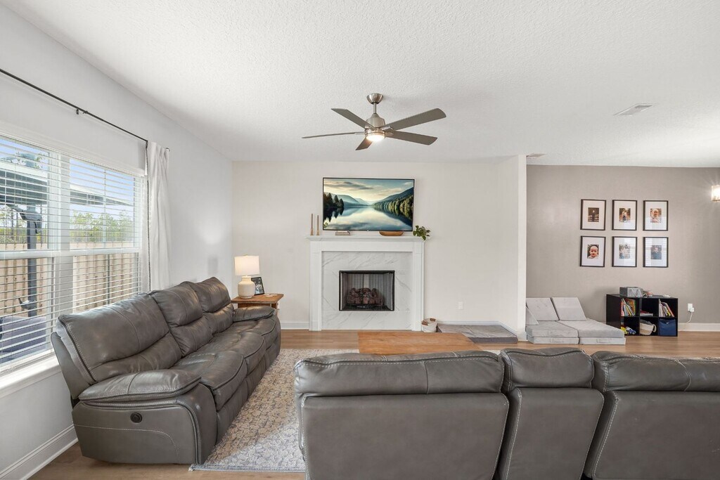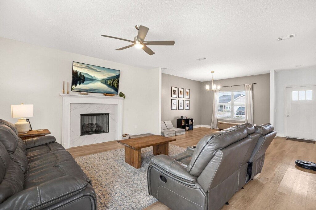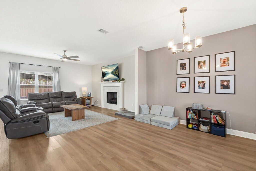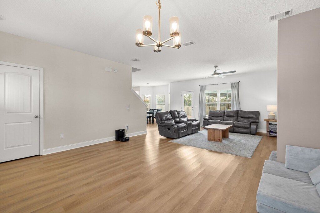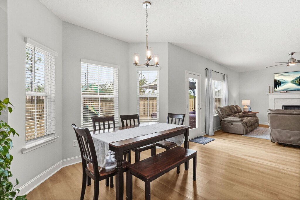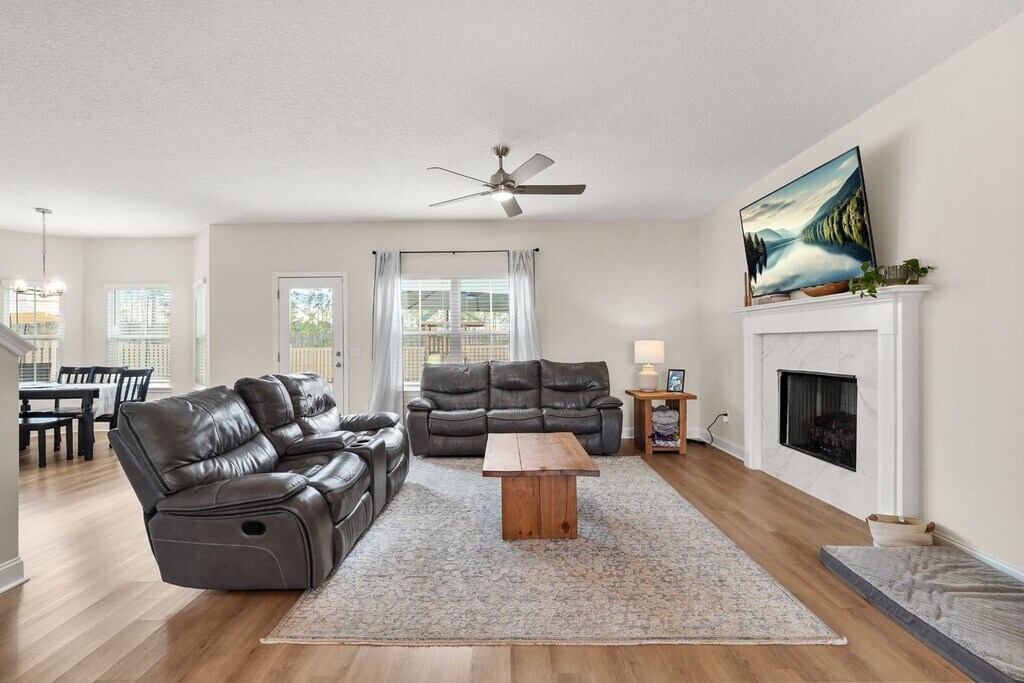 Built in 2023, this like-new 4-bedroom, 2.5-bath home offers modern living with a spacious and functional layout. The open-concept living room flows into a separate dining area and breakfast nook that leads into a beautifully designed kitchen featuring white shaker-style cabinets, stainless steel appliances, granite countertops, and a large walk-in pantry. LVP flooring runs throughout the downstairs, which also includes a convenient half bath. Upstairs you’ll find a laundry room and a spacious primary suite with an ensuite bath featuring double granite vanities, a garden tub, separate shower, and two walk-in closets. Enjoy a two-car garage, covered front porch, and a privacy-fenced backyard with an uncovered patio. Conveniently located near Fort Stewart and Hinesville.