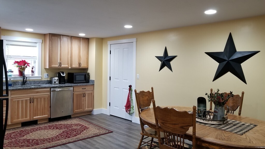 Gorgeous and spacious 1st fl apartment. 3 bedrooms,1 3/4 bath colonial farmhouse with modern updates! This spacious apartment was gutted to the exterior studs & completely remodeled. Fully insulated,all new windows,roof,hot water baseboard heating,plumbing,septic,& electrical. Vinyl plank floors throughout the entire house look beautiful & are a breeze to clean. The huge eat-in kitchen is fully applianced & outfitted with a stove,refrigerator,& dishwasher. Granite countertops,hickory cabinets,& recessed lighting make this kitchen sleek. The master suite is spacious and it has an adjoining master bath with washer & dryer hookups. The full bathroom has Quartz countertops & double bowl sinks. You'll enjoy the peaceful deck facing a large backyard with nice breezes. Great to sit on the deck and just enjoy your morning coffee,not to mention the exceptional rural N.E. views. 17 miles to Worcester. Call now! MLS# 73403521