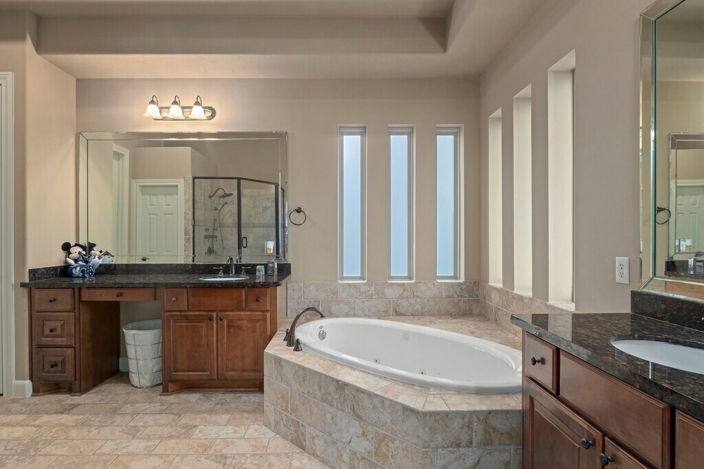 Fully Furnished - This beautifully maintained home offers 4 bedrooms and 3.5 baths in a sought-after location. Walk to school or enjoy the nearby golf course. The spacious layout includes an open-concept living area,a gourmet kitchen with granite countertops,and a bright,airy dining space. The primary suite features a large walk-in closet and a luxurious bath. Additional highlights include a three-car garage,generous closets throughout,and an impressive two-story office and library. Outdoors,you’ll find a sparkling pool,a built-in kitchenette perfect for entertaining,and stunning views of the Gary Player golf course. Fully furnished and move-in ready — ideal for those seeking stylish living without the commitment of buying. MLS# 52739905