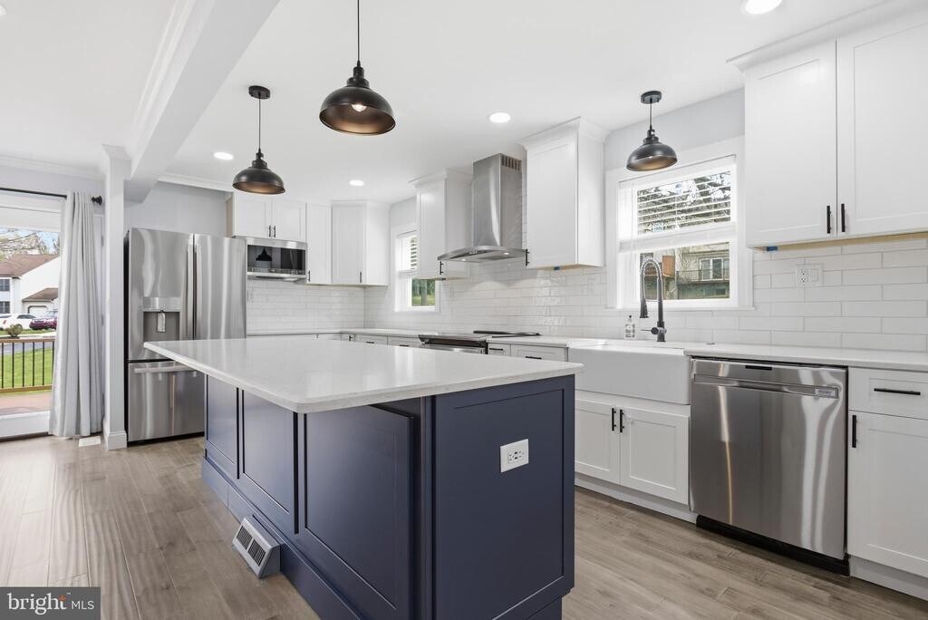 Welcome to this beautifully renovated 3 bedroom, 2.5 bath townhome in the quiet Pennell Place community. This is a one-of-a-kind townhome with a fully open first floor plan as well as THREE bedrooms on the second floor. This home boasts all new floors, brand new kitchen with a 9 foot island, gorgeous counters, beautiful white cabinets, stainless steel smart appliances, a large coffee nook/wine/wet bar and doors that lead to a brand new trek deck with stair access to the side/front yard. The first floor is complete with a new 1/2 bathroom with a pocket door right off of the living room as well as a large walk-in coat closet. The door in the foyer leads to a wall to wall open shelved pantry and continues down to a full basement with a walkout to the backyard and nice covered sitting area under the deck. The exterior also has a brand new retaining wall and the siding/roof was all redone in 2022. The basement also provides a washer and dryer. The second floor leads you to three spacious bedrooms and two brand new bathrooms. This home has SO much closet space. The master is complete with a walk in closet with a full closet system, brand new bathroom with large stall shower. The hall bathroom is also completely new with a bathtub. The entire perimeter of the home has been water proofed as well as a new HVAC system. This home is located in the highly desirable Rose Tree Media School District. Has access to Route 1, Riddle Hospital, shopping, dining and Media Train Station within minutes!!