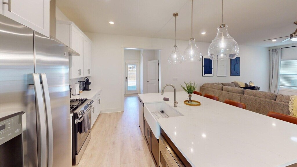 Feel at home in this 4-bedroom, 3.5-bath home in Emerson, thoughtfully designed for families, sports teams, and group getaways. It’s an ideal home base for tournaments, events, and extended stays. This home sleeps up to 12 guests across 4 bedrooms, all of which include Fire TVs. The open living and dining areas are ideal for gathering, and high-speed Wi-Fi is available throughout the home. The upstairs laundry room includes a top-load washer, dryer, ironing board, and iron. The kitchen is fully stocked with cookware, bakeware, dishes, and utensils, and features a full stainless steel appliance package, including a microwave, a gas cooktop, and a Keurig coffee maker with starter coffee pods. Kitchen island seating is available for 4, and the dining table seats 7–8 comfortably. A welcome basket and starter essentials are provided upon arrival. This is a pet-friendly property upon approval with applicable fees. This home is centrally located less than two miles from LakePoint Sports Complex and offers easy access to I-75 and Highway 41. It is also convenient to Emerson and Cartersville. Local highlights and attractions include the Savoy Automobile Museum and the Tellus Science Museum, both approximately 15 minutes away, and Lake Allatoona, approximately 20 minutes away, offering boating, beaches, fishing, and hiking. This is a non-smoking property, and no events or parties are allowed. Pets require prior approval before check-in. Guests must contact us in advance to discuss their pet’s stay. Upon approval, the applicable pet fee is collected. Additional cleaning fees are charged for excess hair, dander, or odor. Emotional Support Animals are not considered service animals and are not eligible for fee exemptions. Failure to disclose an ESA before arrival results in applicable pet and cleaning fees being charged upon discovery, if not after check-out, and may impact the reservation. Driveway parking is available for guests. Outdoor areas are intended for quiet enjoyment, and no parking is allowed on the grass. [SI]