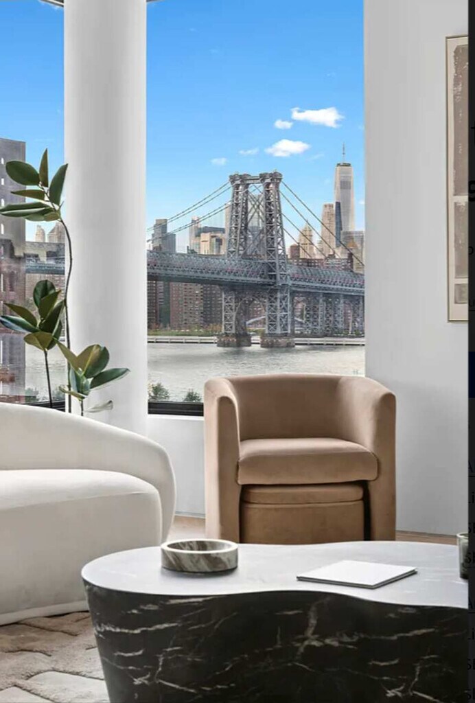 Feel at home in this fully furnished 3-bedroom, 2.5-bath residence at Fifty One Domino, offering elevated Brooklyn living with stunning Manhattan skyline and East River views. This home occupies an entire floor and is accessed via a private keyed elevator, ensuring comfort, privacy, and space. This expansive residence features an open living and dining area with floor-to-ceiling windows and direct access to a spacious covered terrace with southern exposure. The chef’s kitchen is fully equipped with premium Sub-Zero, Wolf, and Cove appliances, a wine refrigerator, and generous storage. The primary suite offers a walk-in closet and spa-inspired en suite bathroom with heated floors, a soaking tub, a double vanity, and a rain shower. Two additional bedrooms share a beautifully appointed bathroom, complemented by a powder room and in-unit laundry. The home is fully turnkey and thoughtfully prepared for short- and long-term stays, including designer furnishings, fresh linens, towels, pillows, and blankets, and a fully equipped kitchen with cookware, dishware, and essential kitchenware. Residents also enjoy access to a rooftop with sweeping city views. Located in the heart of Williamsburg, Fifty One Domino places you steps from some of New York City’s best dining, cafés, and nightlife, from Michelin-starred restaurants to local neighborhood favorites. Enjoy easy access to waterfront green spaces including Domino Park, Grand Ferry Park, Bushwick Inlet Park, and East River State Park. Transportation is seamless with nearby access to the L, J/M/Z, and G subway lines, as well as the NYC East River Ferry, making commuting to Manhattan and beyond quick and convenient. [SI]