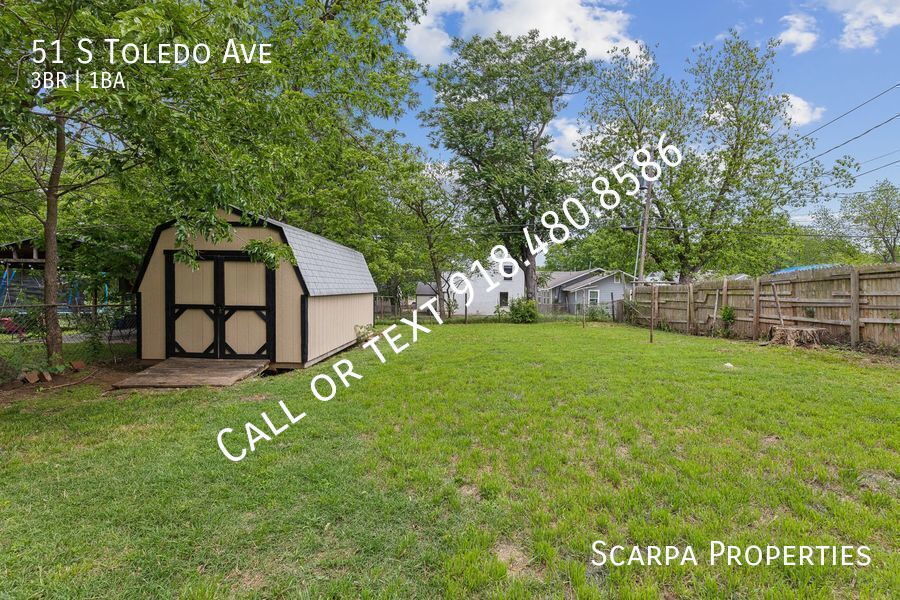 Welcome to 51 S Toledo Ave, a neat 980 sq ft home that offers a blend of comfort and convenience. This 3-bedroom, 1-bathroom house features well-lit rooms with comfortable dimensions, fresh paint, and new carpeting, creating a serene retreat for rest and relaxation. Each bedroom is thoughtfully designed with efficiency in mind, providing a cozy atmosphere and adequate closet space for your essentials. The bathroom is practical and well-maintained, with classic tiling that adds a touch of character. Step into the kitchen where functionality meets classic design, offering wooden cabinets and reliable appliances for your home-cooked meals. The living area, adjacent to the kitchen, is a versatile space that awaits your decorating flair. Outside, the property boasts a securely fenced front yard, offering peace of mind and a safe play area for little ones or pets. The one-car garage adds convenience, ensuring your vehicle or extra belongings are tucked away securely. At the back of the home, the expansive concrete patio is an ideal spot for hosting barbecues or enjoying the outdoors. With easy access to Highway 244, you’re minutes from the energy of the Tulsa Expo Center, the fairgrounds, and Tulsa University, making it a strategic spot for both work and play. The airport is also a short drive away, perfect for frequent flyers. Rental Requirements & Terms: • Lease Duration: 12 to 18 months, aligning renewals between March & August. • Month-to-Month Option: Available at a 20% increase in rent, plus a $20 monthly administration fee, on signing or after the initial lease term. • Move-In Costs: First month’s rent, security deposit, proof of renter’s insurance, and utility transfer confirmation are due at move-in. • Income: Applicants must have a combined gross income equal to at least 3 times the monthly rent. • Rental History: No evictions recorded in the past 5 years. • Credit & Background Checks: A $45 non-refundable fee applies for each applicants over 18 to cover these checks. • Credit Score: A score of 620+ is required. • Alternative Solutions: Applicants not meeting the credit score requirement may present a qualified co-signer or opt to pay an additional security deposit, subject to approval. • Criminal History: Applicants must have no violent felonies or misdemeanors related to document falsification. • Pets: Dogs under 65 lbs are welcome with a $45 monthly pet fee; no cats, but other caged pets are considered. • Lease Administration Fee: A one-time fee of $100 is required upon lease acceptance. Take a virtual tour; Mandatory Resident Benefit Package ($30/month): • Utility Concierge Service: A personalized service to help set up utilities, find the best deals, and manage connections seamlessly. • 24/7 Troubleshooting: Instant video chat support with expert technicians for emergency maintenance issues. • Financial Protection: Up to $2,000 reimbursement for accidental damages, missed appointments, lockouts, etc. • Home Lifestyle Services: Coordination of tasks such as home cleanings and furniture assembly via Latchel. • Benefits Marketplace: Special offers including cash back, rent rewards, and credit building. • Exclusive Latchel Perks: Compensation for missed maintenance appointments, complimentary hotel stays during unresolved overnight emergencies, and more.Laundry Hook Ups Stove