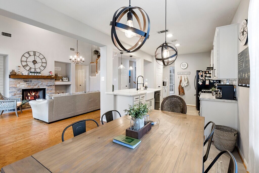 Somer PadillaGorgeous updated and furnished home in The Woodlands with wonderful schools on a cul-de-sac. Modern farmhouse style complete with soaring ceilings, over-sized bedrooms, game room, and a fabulous backyard space. Updated kitchen features Carrara marble countertops, undercabinet lightings, stainless steel appliances, updates fixtures, and farm sink. Your spacious primary suite has bay windows, crown molding, and a recessed ceiling. Primary en-suite bathroom offers a soaking jetted tub, walk-in shower with a double sink vanity, and a walk-in closet. The quiet and private backyard features lush landscaping, fruit trees, paved patio and darling pergola to enjoy all seasons. Neighborhood park just across the street & 5 min walk to Windvale park/pool.