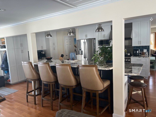 Call for Availability - One-year furnished rent available in desirable Guilford CT. Split Level home located on the west side of town with very convenient access to New Haven, shopping and restaurants. Completely furnished with 1 car attached garage. Main living level has an inviting front room with an open concept kitchen, dining room and family room. There is quick access to the patio. There are two bedrooms and an office (set up with desk, not adaptable for a bedroom). The primary bedroom has two large closets and a private bath. The garage is attached to the house and entry is via the mudroom. There is plenty of storage in the crawl space off the mudroom. Tenant is responsible for all utilities. Landlord takes care of lawn care and snow removal from driveway. Tenant to remove snow from walks and steps. Housekeeper service required. Spend the year in this delightful, fully furnished home. MLS# 24149267
