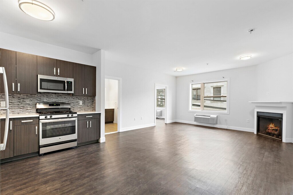 2 bed 2 bath bath apartment, top floor, very spacious primary bedroom with walk-in closet. Gas fireplace! Gourmet kitchen with granite counter. S/S appliances, hardwood floors, ceramic tiles bathroom. NYC view! 4th Floor! Washer and dryer available in the unit. Private parking garage available $125 per month. Walking distance to shops & restaurants. Easy commute to NYC, the bus stop around the corner. Great location for a growing community of urban professionals, couples and family with kids. Pets friendly (up to 25lb) with $350 non-refundable fee. Tenant pays electric and gas, water and sewerage.