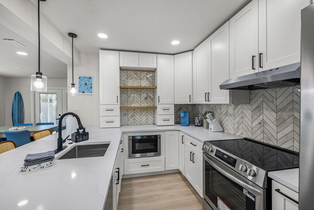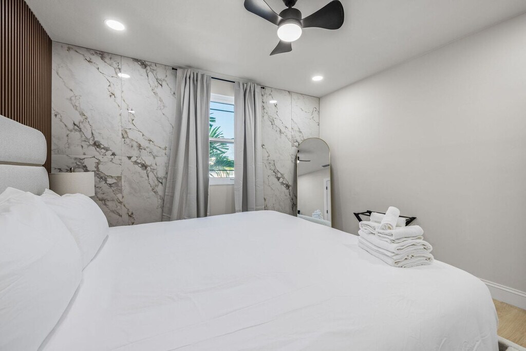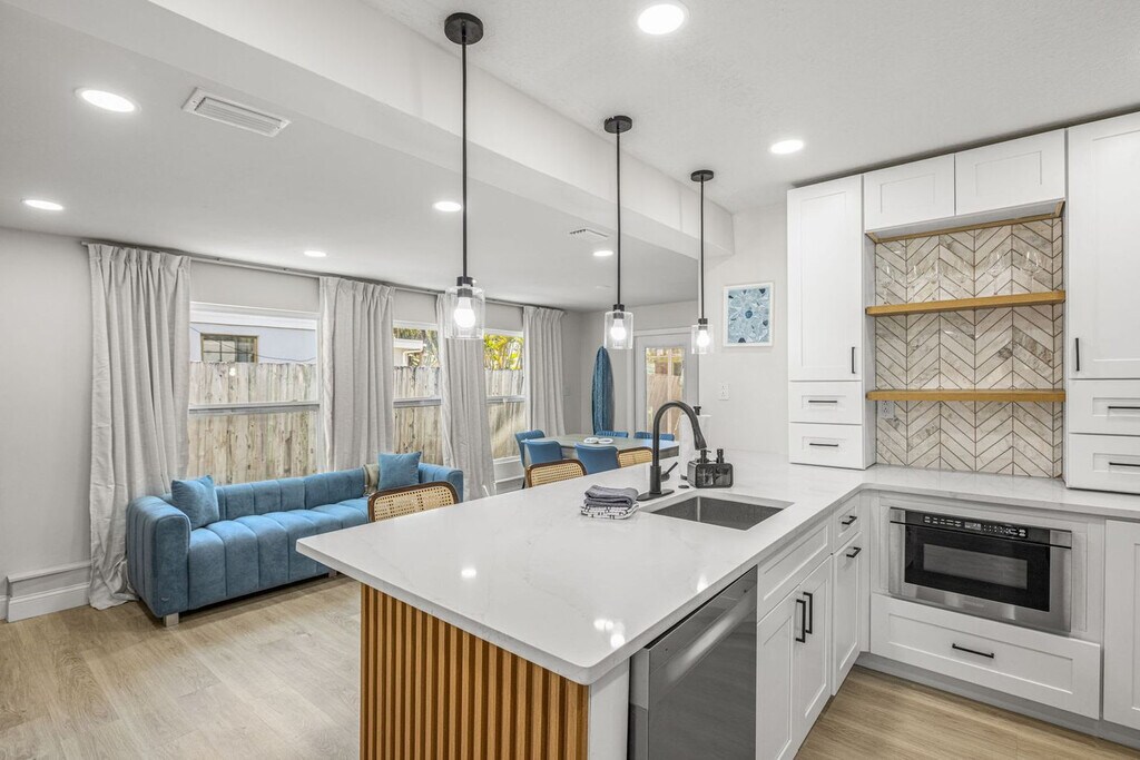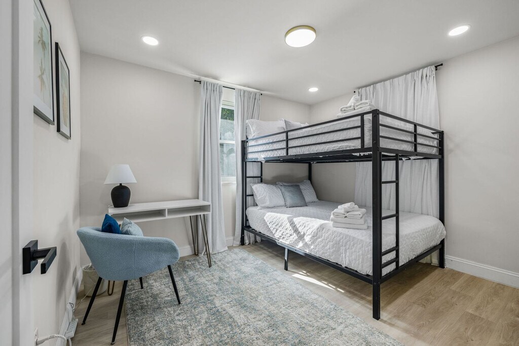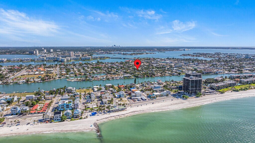 Feel at home in this 3-bedroom home in a prime location in St. Pete Beach, accommodating up to 8 guests. Designed for relaxation and fun, this bright and breezy home blends coastal charm with modern comfort. The fully stocked chef’s kitchen features high-end stainless appliances, a large refrigerator, ample cabinetry and cooking space, and a Keurig coffee maker. The living room includes a 55” smart TV and a large plush sofa. Enjoy wellness amenities including a red light therapy lamp, lymphatic compression boots, and a muscle massage gun. For outdoor fun, there's an expansive backyard space, a fire pit, a BBQ grill, a tiki bar, a ping pong table, beach essentials, and a fully fenced yard. Up to 2 dogs are allowed for a fee of $125 per stay. Just minutes from the white sands of St. Pete Beach, this home places you near the area’s best dining, shopping, and entertainment. St. Pete Beach is 0.3 miles away, Pass-a-Grille Beach is 2.2 miles away, John’s Pass Village & Boardwalk is 5 miles away, Upham Beach Park is 0.6 miles away, and Treasure Island Beach is 3.8 miles away. Nearby restaurants include The Toasted Monkey (0.3 miles), Buoys Waterfront Bar and Grill (0.3 miles), Tiki Bagel (0.4 miles), Snapper’s Sea Grill (0.9 miles), and Level 11 Rooftop Lounge (1.5 miles). Check-in is at 4pm and check-out is at 10am. No cats are allowed. The washer and dryer are not available in this property. Parking is available for 3 vehicles in the driveway, and street parking is allowed. Guests must be 25 years or older to book this property. No parties are allowed, and violations may result in immediate termination of the stay. Bedroom 2 includes a dedicated workspace. [SI]