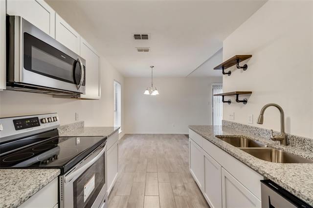 Come view this upgraded and updated stunner is desirable Grand Prairie Texas. Home has just received a long list of improvements and upgrades. The kitchen is new and includes new granite counters and new stainless steel appliances. The luxury vinyl plank is new. The paint is neutral and fresh. The bathrooms have been updated. The light fixtures and plumbing fixtures are new. The house has a fenced back yard. New AC system just installed. Walk to great schools, park and shopping.