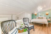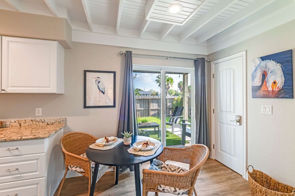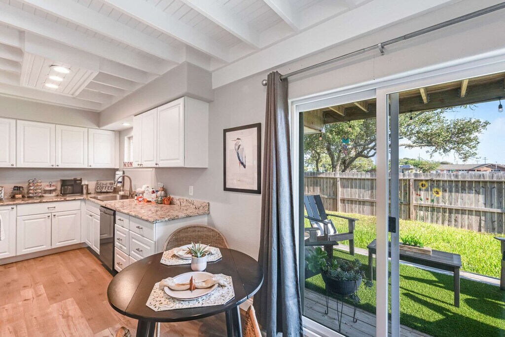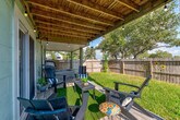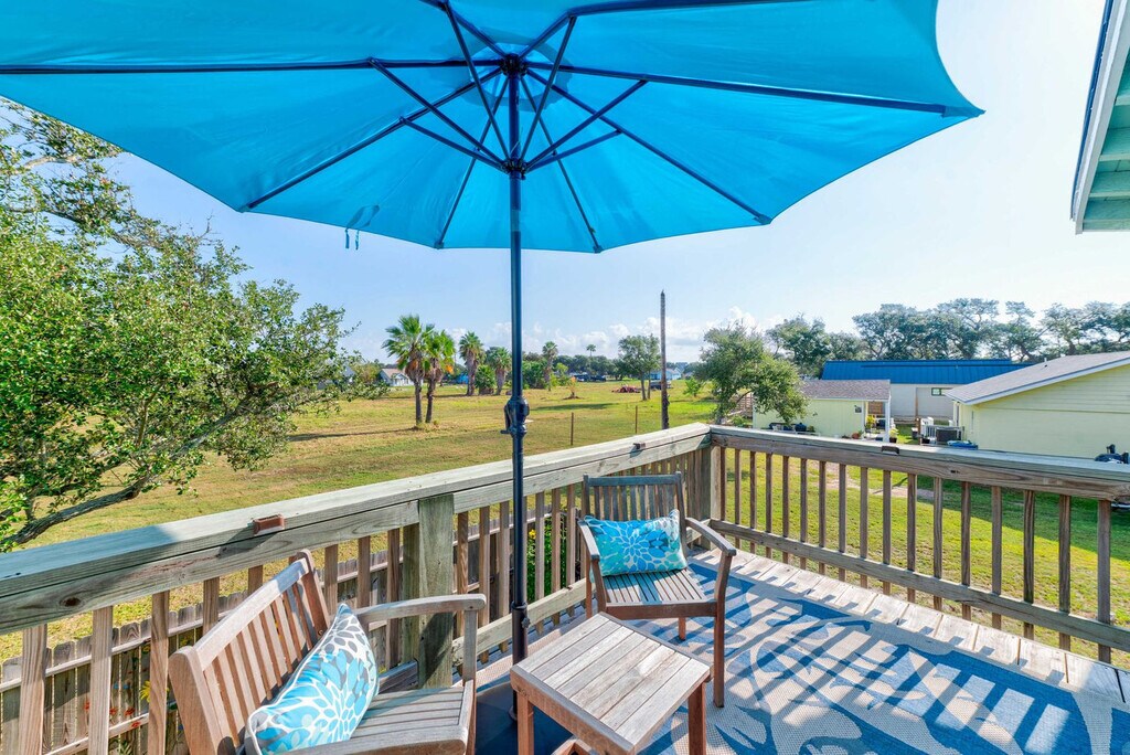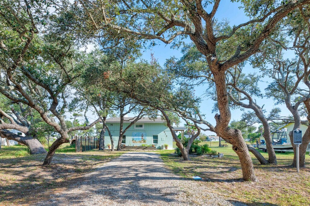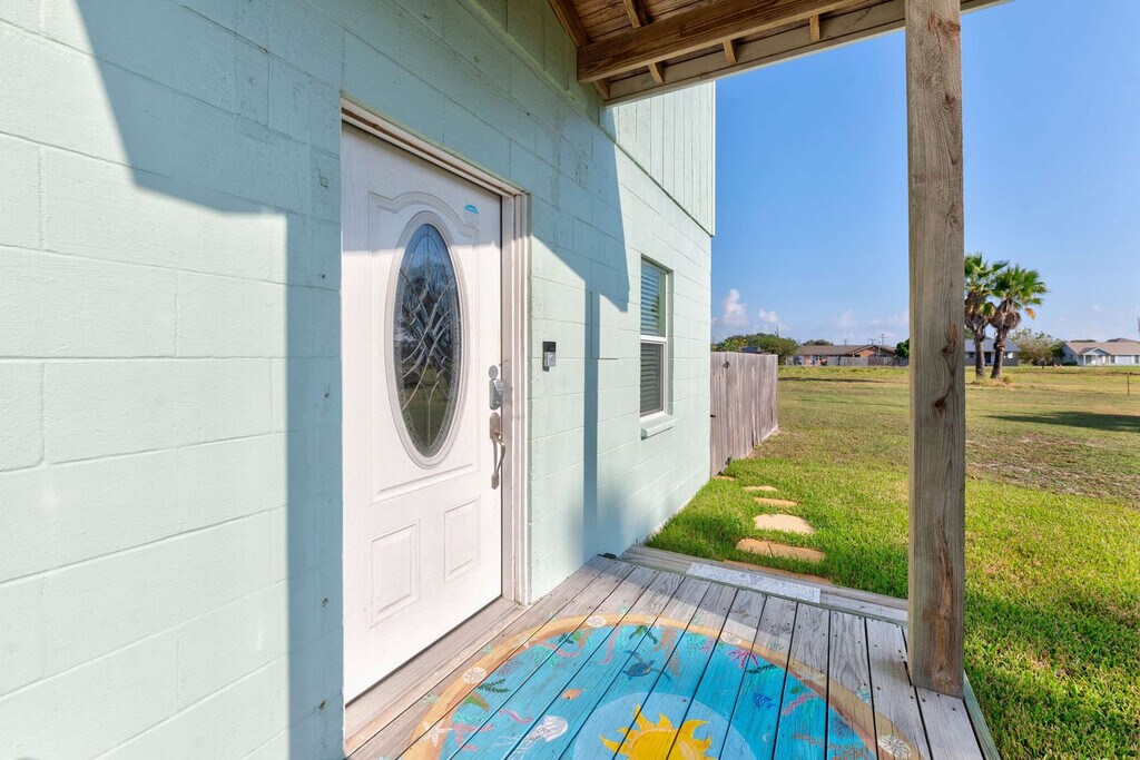 Feel at home in this unique Rockport home, offering a bright, open layout with a loft-style sleeping area. This coastal cottage, once owned by the esteemed artist Simon Michael, sleeps up to 4 guests and has 1.5 bathrooms. This one-of-a-kind apartment features distinctive artwork and décor. The fully stocked kitchen includes modern appliances and both a drip and Keurig coffee maker. Enjoy amenities such as a hot tub, outdoor patio/dining area, BBQ grill, board games, private balcony, beautiful faux fireplace, plush beds, high-speed Wi-Fi, a washer and dryer, and a fully fenced yard. Complimentary coffee, tea with condiments, and a welcome snack basket are provided to start your stay off right. Minutes away from Rockport Beach, this apartment is also near attractions such as the Fulton Mansion State Historic Site (2 miles), the Texas Maritime Museum (1 mile), the Downtown Rockport Arts & Shopping District (1 mile), and Goose Island State Park & The Big Tree (11 miles). Nearby restaurants include Charlotte Plummer’s Seafare Restaurant (2 miles), The Boiling Pot (2 miles), Latitude 28°02’ Restaurant & Art Gallery (1 mile), Rockport Daily Grind (1 mile), and Moondog Seaside Eatery (2 miles). No pets are allowed. No parties are allowed—violations may result in immediate termination of the stay. Guests must be 25 years or older to book this property. An exterior camera is installed solely to monitor the cleaning team for quality and security purposes. Parking is available for 2 vehicles on the long drive (boats will fit). Street parking is allowed, but no parking is allowed on the lawn. Check-in is at 4pm and check-out is at 10am. Includes a dedicated workspace. [SI]