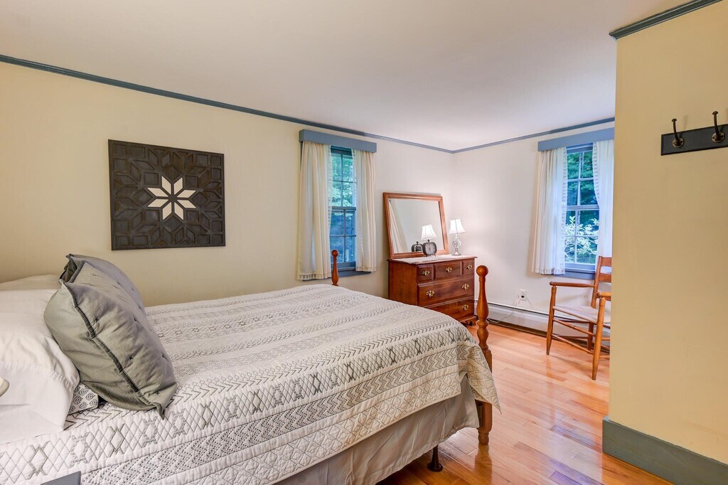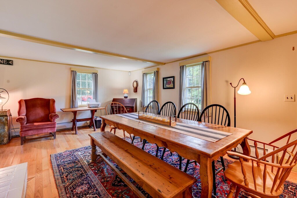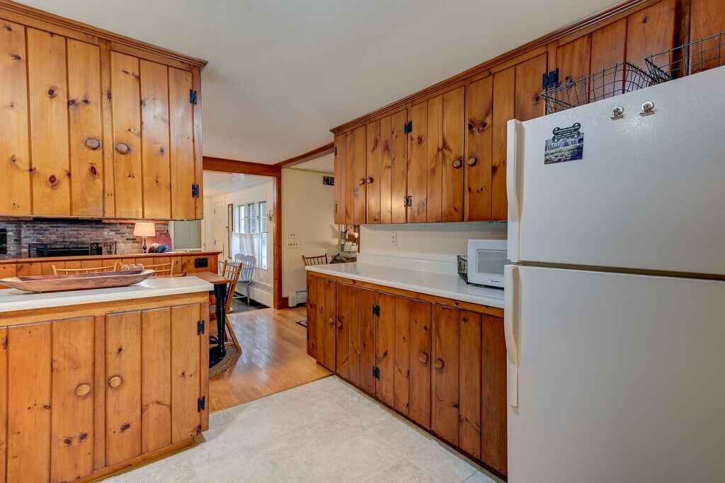 Seasonal Rental November 1-May 5th $13,567 for the season. Adorable and charming rental in prime North Conway location. Fully furnished and ready to move in, enjoy this ski season less than two miles to the base of Cranmore Mountain! This cottage cape is clean, cozy and has been incredibly well maintained. The living room features an inviting sectional sofa with wood burning fireplace and large brick hearth. The large windows with glass sliders leading out to the back patio and level backyard. The kitchen is nicely sized with tons of cabinet and counter space and fully equipped, ready for your home cooked cozy winter meals. The formal dining room off the kitchen is a wonderful space to gather with friends and family. The primary bedroom is comfortable with a convenient half bath, and the second bedroom is spacious with a wall of built-ins for great closet space. Also in the hall is a shared full bathroom. The garage provides extra storage and convenience for your vehicle in the winter months. Come and see! MLS# 5066645