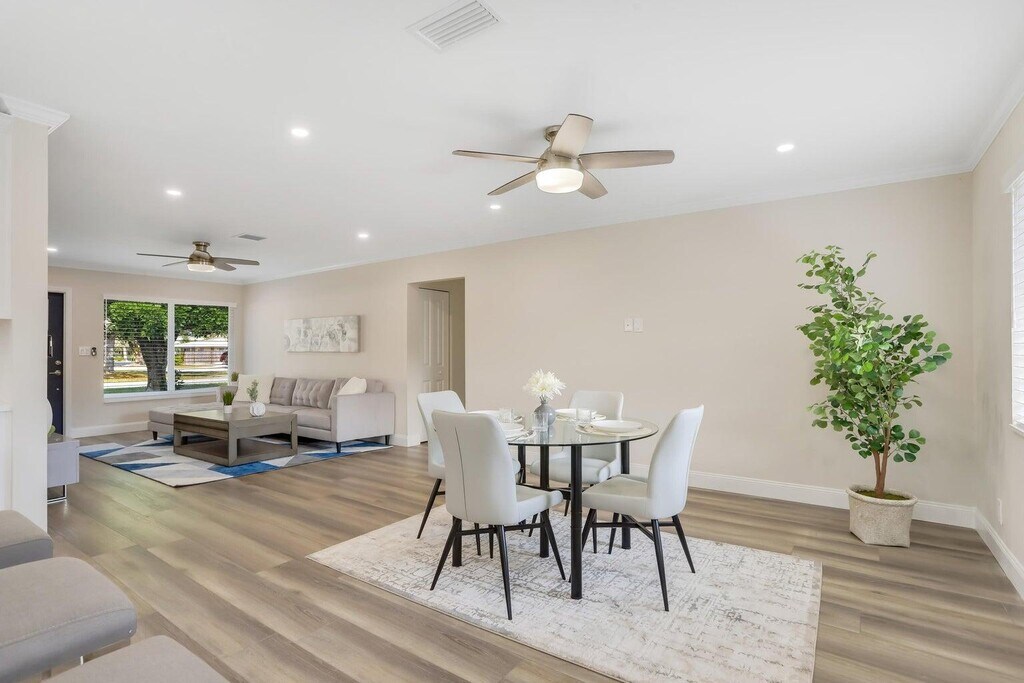 Welcome to this beautifully renovated single-family home in the heart of Delray Beach, ideally positioned on a rare 9,400 sq ft corner lot with no HOA. Pet friendly luxury single family home rental with minimum 3 months lease. Just minutes from the ocean, vibrant Atlantic Avenue, in Delray Beach, and upscale Mizner Park in Boca Raton, this location truly offers the best of South Florida living. Step into your own private backyard oasis, complete with a brand new custom-designed pool and elevated spa featuring multi-color LED lighting, a heater, and smartphone-controlled automation. Surrounded by sleek marble decking, this space is perfect for outdoor entertaining, relaxing, or enjoying the Florida sun in complete privacy. Inside, the home offers a seamless blend of modern comfort and