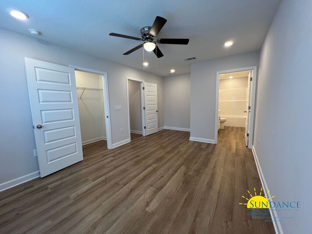 Brand new construction in the heart of Crestview! This beautiful 2-story home features 3 bedrooms, 2.5 bathrooms, and a 1-car garage with automatic opener along with driveway parking, conveniently located near S. Ferdon Blvd, Highway 90, shopping, and dining. Inside, you'll love the spacious open-concept layout with a split-bedroom floor plan for added privacy, a large living/dining room combo, and stylish LVP flooring throughout. The modern kitchen is equipped with stainless steel appliances, including an electric stove and oven, refrigerator with ice maker, dishwasher, and mounted microwave, plus granite countertops and a breakfast bar. The primary suite features a dual vanity and shower/tub combo, with two additional bedrooms and a full bathroom upstairs. A dedicated laundry room with washer and dryer included adds everyday convenience. Step outside to enjoy an open patio and fully fenced backyard with a 6-foot privacy fence. Additional highlights include front and back hose reels (AS-IS), garage shelving (AS-IS), and hurricane materials provided (AS-IS). This move-in ready home offers the perfect blend of comfort, quality, and location. Don’t miss your opportunity to make it yours! Pets are accepted with a $250 per pet non-refundable pet fee (Subject to Owner Approval) No smoking is permitted. In addition to the rental amount, all Sundance Rental Management residents are enrolled in the Resident Benefits Package (RBP) for $25.00/month which includes liability insurance, credit building to help boost the resident’s credit score with timely rent payments, and much more! The benefits can be found on our website under Tenant FAQ.