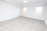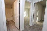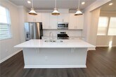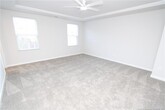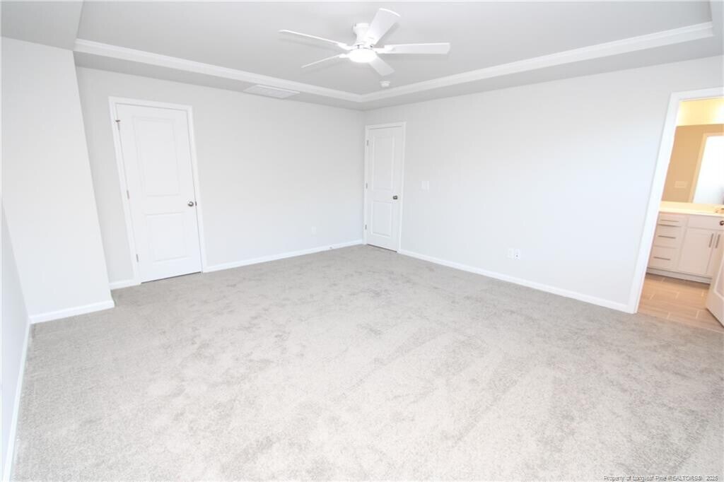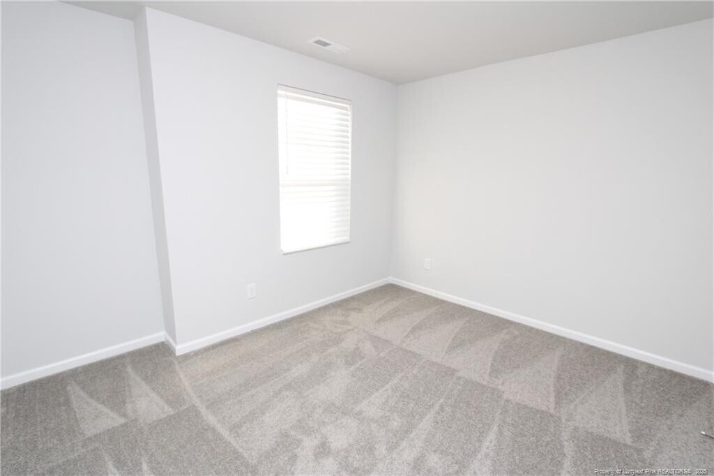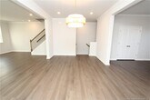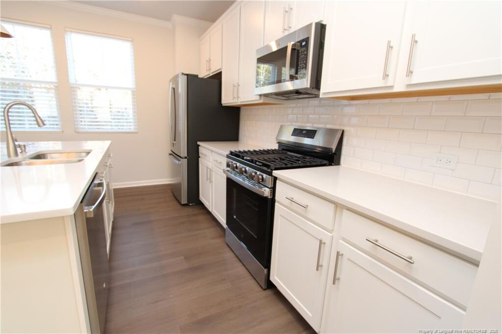 Available immediately, this stunning three-story new-construction townhome at 510 Light Oak Way in Apex beautifully blends modern elegance with thoughtful design. The home’s attractive exterior showcases timeless gray siding with crisp white trim, complemented by stone accents and a covered entryway that creates an inviting first impression before you even step inside. Upon entering the foyer on the ground level, you are greeted by bright natural light, soft neutral wall tones, and modern luxury vinyl flooring that enhances the home’s clean, contemporary aesthetic. This level features a generously sized bedroom with plush carpet, a large window, and a spacious walk-in closet, offering an ideal private suite for guests, extended family, or a dedicated home office. An adjacent full bathroom includes a tub/shower and a sleek elevated marble topped vanity complete with modern finishes, creating both convenience and comfort. This floor also provides interior access to the expansive two-car garage for everyday ease. The second level reveals the heart of the home, where an open-concept great room, dining area, and designer kitchen flow seamlessly together under elegantly finished perimeter recessed lighting. The great room is filled with natural light from multiple windows and offers abundant space for relaxing or entertaining while lending itself to easy furniture placement. The adjoining dining area boasts a unique circular chandelier and easily accommodates a full-sized table and maintains an open line of sight to both the kitchen and living space, ensuring effortless hosting. The kitchen is a true showpiece, designed with gleaming white cabinetry, polished chrome hardware, a subway tile backsplash, and expansive quartz countertops that are as durable as they are attractive. A massive kitchen island with a double undermount stainless steel sink, gooseneck pull-down faucet, and an integrated dishwasher offers superior functionality while also serving as the perfect gathering spot. The kitchen is equipped with a sleek stainless-steel appliance package, including a gas range, built-in microwave, side-by-side refrigerator, and ample pantry storage that ensures both style and practicality. Just beyond the kitchen, a glass door leads to a private raised deck with wood privacy screening, ideal for morning coffee or evening relaxation. A well-appointed powder room completes this level for added everyday convenience. Ascending to the third floor, you’ll find a thoughtfully designed layout that includes the luxurious primary suite, two additional secondary bedrooms, a well-placed laundry room, and two beautifully finished bathrooms. The primary suite features abundant natural light from dual windows, plush carpet, a tray ceiling with crown molding, and a spacious footprint that allows for a full bedroom suite with room to spare. The attached walk-in closet provides exceptional storage, while the en-suite bathroom showcases an oversized tiled shower with glass enclosure, a private water closet, and an extended dual-sink marble topped vanity with polished chrome fixtures, delivering a spa-like experience at home. Bedrooms two and three are equally inviting, each offering large closets, generous floor space, soft carpeting, and bright windows that create comfortable retreats for family or guests. The nearby full bathroom features an elevated double-sink marble topped vanity with brilliant white cabinetry, modern fixtures, and a tub-shower combination surrounded by durable, easy-to-maintain surfaces. The conveniently located laundry room sits at the center of the third floor, ensuring household tasks remain simple and accessible. Throughout the home, the design emphasizes comfort, natural light, and premium finishes at every turn.