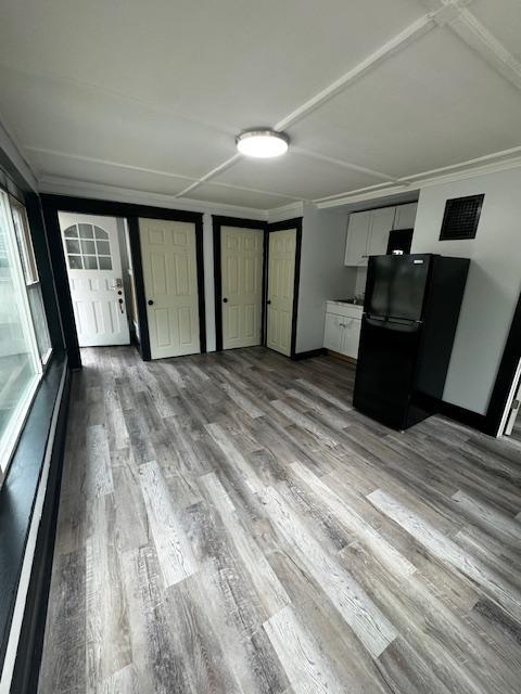 Now available is this stylishly updated 1-bedroom unit featuring brand-new flooring throughout, a modern kitchenette with sleek black and white accents, and plenty of natural light thanks to large windows. The open-concept main space includes a compact cooking area with a stovetop, microwave, and fridge, perfect for easy everyday living.The bathroom includes a stand-up shower, updated vanity, and a separate toilet area. The bedroom is private and cozy with clean finishes and overhead lighting. Well maintained 1bdrm property in the heart of Farmington Nh. Centrally located boasting lots of character.
