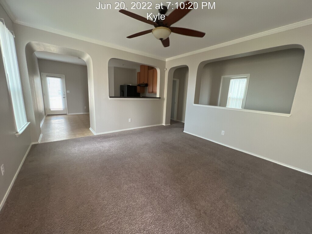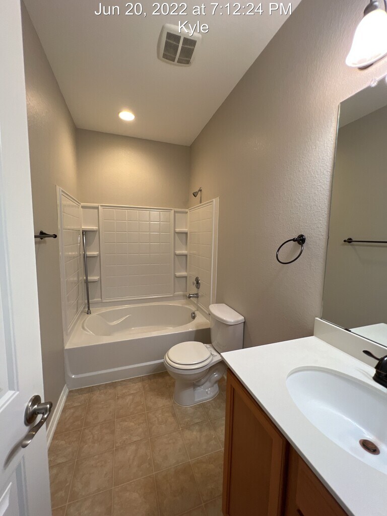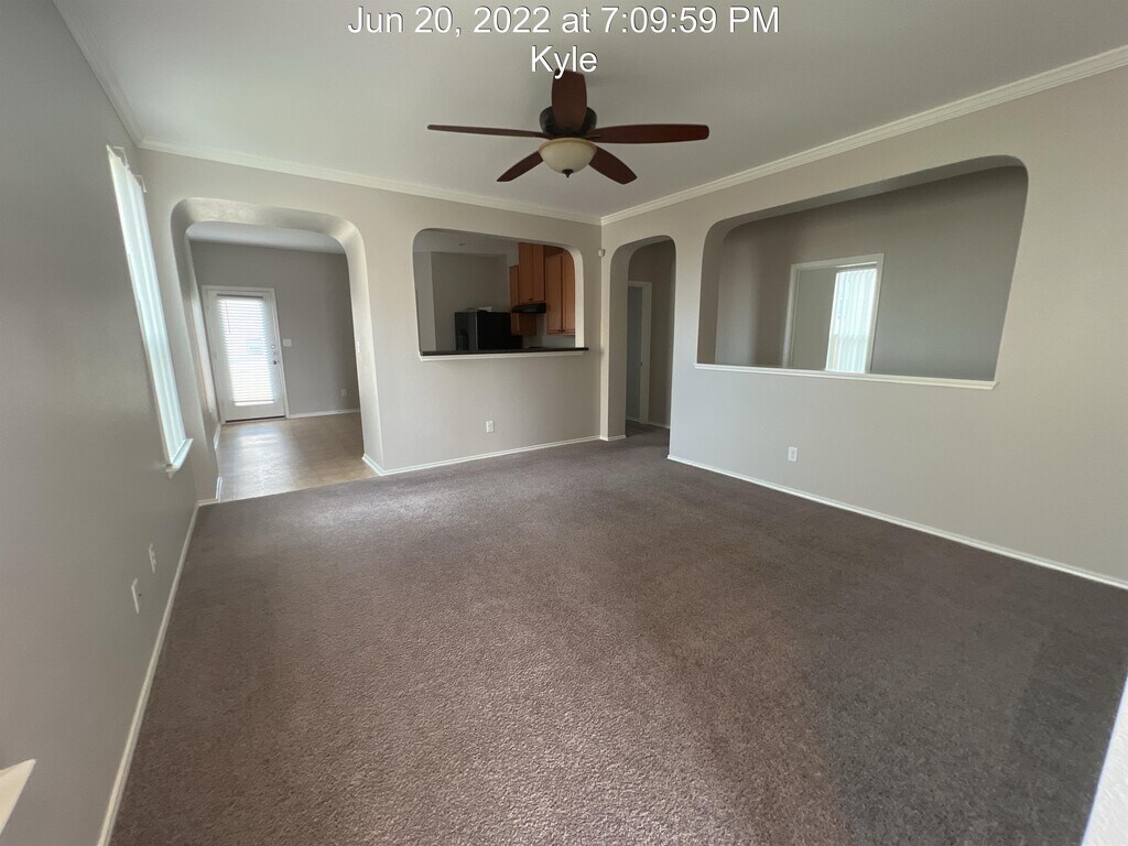 Available 3/13/26. Well-maintained residence located in the desirable Waterleaf Subdivision! This attractive community features a park, playground, community pool, basketball courts, and a picnic area, all within a short walking distance from the home. The interior boasts an open floor plan with high ceilings, a garden tub in the master bathroom, and ceiling fans in both the living room and master bedroom. The refrigerator, washer, and dryer will remain for the tenant's use. New carpets being installed in all the bedrooms. The property includes a fully fenced private backyard. Conveniently situated just minutes from I-35 for easy commuting to Austin or San Antonio. Pets are permitted with prior approval. Applicants must demonstrate an household income of at least 3x the rent .