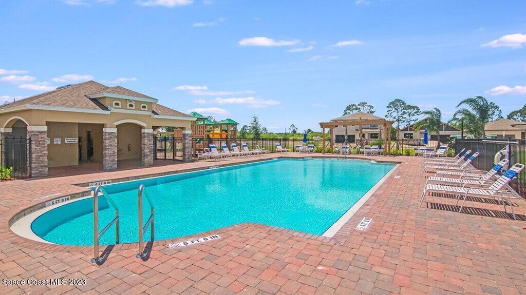 4/2/2 house located in gated community of Bayside Lakes! This one-story model home layout optimizes living space with an open concept kitchen that overlooks the great room,dining area,and outdoor covered lanai. The owner's suite,located at the back of the home for privacy,has an Ensuite bathroom. At the front of the home,two bedrooms share the second bathroom. A flex room is located near the laundry room. This home features granite countertops,white cabinets,upgraded stainless appliances,and washer and dryer . Large open floor plan with tile in main living areas and carpet in bedrooms. 2 car garage. The community has a pool,Cabana,and tot lot. In addition you have access to all the amenities of Bayside Lakes Community Center.