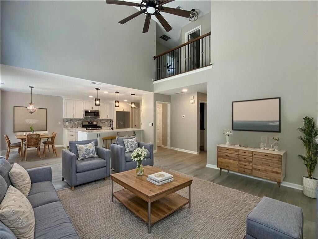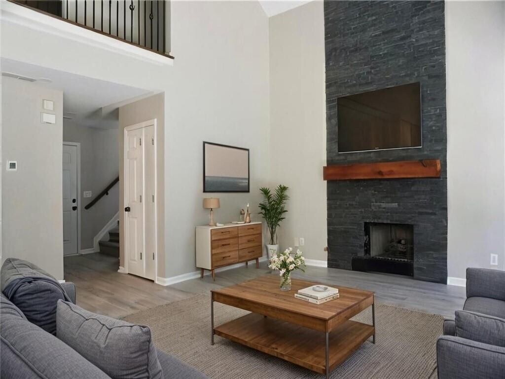 Discover this beautifully renovated home in the highly desirable Parkview at Towne Lake community. Completely updated,it offers a modern,move-in-ready lifestyle just minutes from top-rated schools,Downtown Woodstock,shopping,dining,parks,and more. Step into a stunning open floor plan filled with natural light,featuring a two-story living room and a floor-to-ceiling tiled fireplace. The brand-new kitchen boasts quartz countertops,custom cabinetry,stainless steel appliances,and a washer/dryer set—everything you need is already here. Durable LVP flooring runs throughout,perfect for families and pets alike. Upstairs,the spacious owner’s suite includes a luxurious bath with double vanities,dual shower heads,and a walk-in shower with a bench. Two additional bedrooms share a stylish full bath. A two-car garage,new water heater,and oversized fenced backyard complete the package. Enjoy community amenities including a pool and green spaces,plus easy access to I-575,gyms,entertainment,and Woodstock Outlets. Small pets welcome! This is your chance to enjoy modern comfort,convenience,and a superb location.