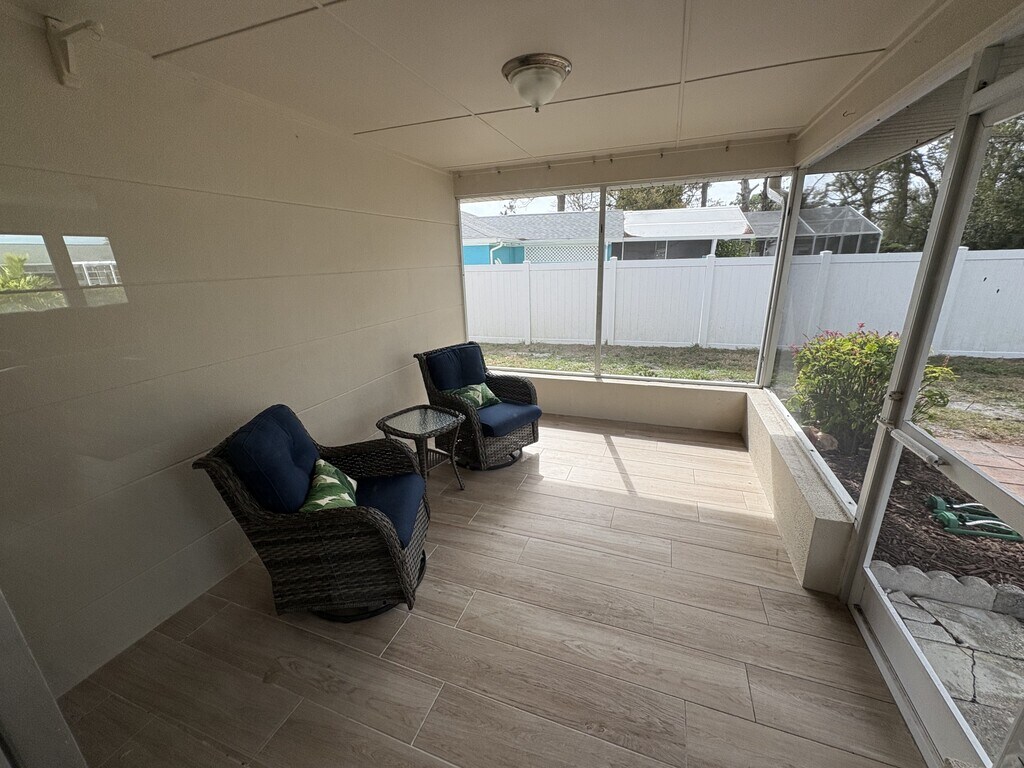 Welcome to your perfect seasonal escape in beautiful Nokomis! This fully renovated 2-bedroom, 2-bathroom home with a 1-car garage offers the ideal blend of comfort, style, and location for your Florida getaway. Step inside to discover a bright, open-concept floor plan featuring a beautifully updated kitchen that flows seamlessly into the main living area—perfect for entertaining or relaxing after a day at the beach. The home showcases luxury vinyl plank flooring and tile throughout, creating a clean, modern look that's both elegant and easy to maintain. Unwind on the screened-in back patio, where you can enjoy peaceful mornings and breezy evenings in a quiet, established neighborhood. Just blocks from the water, you'll have easy access to the stunning Gulf shoreline at Nokomis Beach—home of the famous Nokomis Drum Circle, a must-see local tradition. Ideally situated for convenience, this home offers quick access north or south, placing you just minutes from the charm of Venice Beach and the boutiques, dining, and vibrant atmosphere of downtown Venice Island. Enjoy nearby restaurants, shopping, and all the coastal lifestyle amenities that make this area so desirable. Whether you're looking to relax by the beach, explore local favorites, or simply enjoy a peaceful seasonal retreat, this beautifully updated Nokomis home has it all. Big back yard, not fenced. Single-car garage, county water.