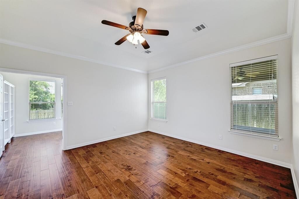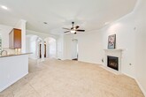 This well maintained 3-bedroom, 2-bath home offers a spacious, light-filled layout. The open floorplan features a tiled kitchen with stainless steel appliances, granite countertops and warm wood cabinetry. A breakfast bar opens into the large living room with complete with a cozy fireplace. A separate dining area provides more space for gathering. The primary suite provides a bonus area perfect for a home office, nursery or gym. Its ensuite bathroom boasts dual vanities, a garden tub, and a separate shower. Both secondary bedrooms share a full bathroom, and all bedrooms have wood floors. Outside, the covered patio opens to a large backyard fully enclosed by a wood privacy fence. A two-car garage and laundry room offer additional storage. Located on a peaceful, tree-lined street, this home is close to neighborhood amenities such as a pool, playground and walking trails with convenient access to the 183-toll road. Contact us to schedule your viewing today.