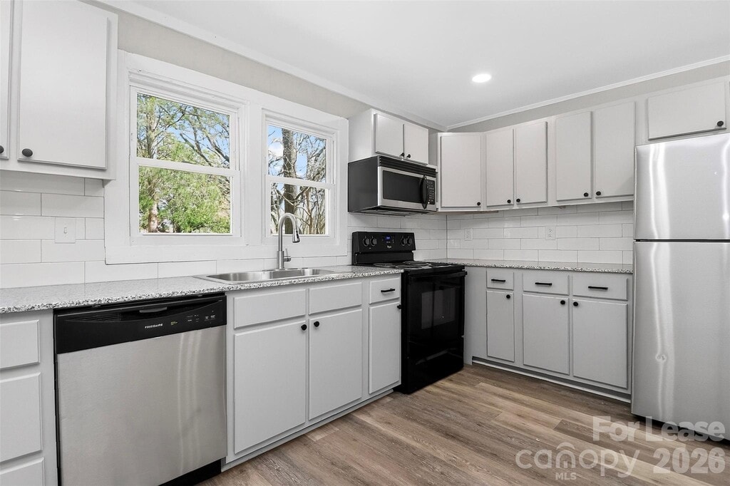 Fully renovated 2 bedroom/ 1 bathroom duplex walking distance to downtown Bessemer City! New interior and exterior paint. New LVP flooring throughout. New kitchen cabinets,granite countertops and stainless steel/black appliances. New bathrooms with tub and tile surround,new vanities and flooring. Custom closets with wood shelving. Newly graded gravel driveways. Newly updated front and rear porches. New front and rear doors,replaced several bedroom/bathroom doors. New mini split AC/Heat systems in each side. New light fixtures,New windows. New rain gutters. Water,trash and lawn maintenance included!! MLS ID CAR4366516