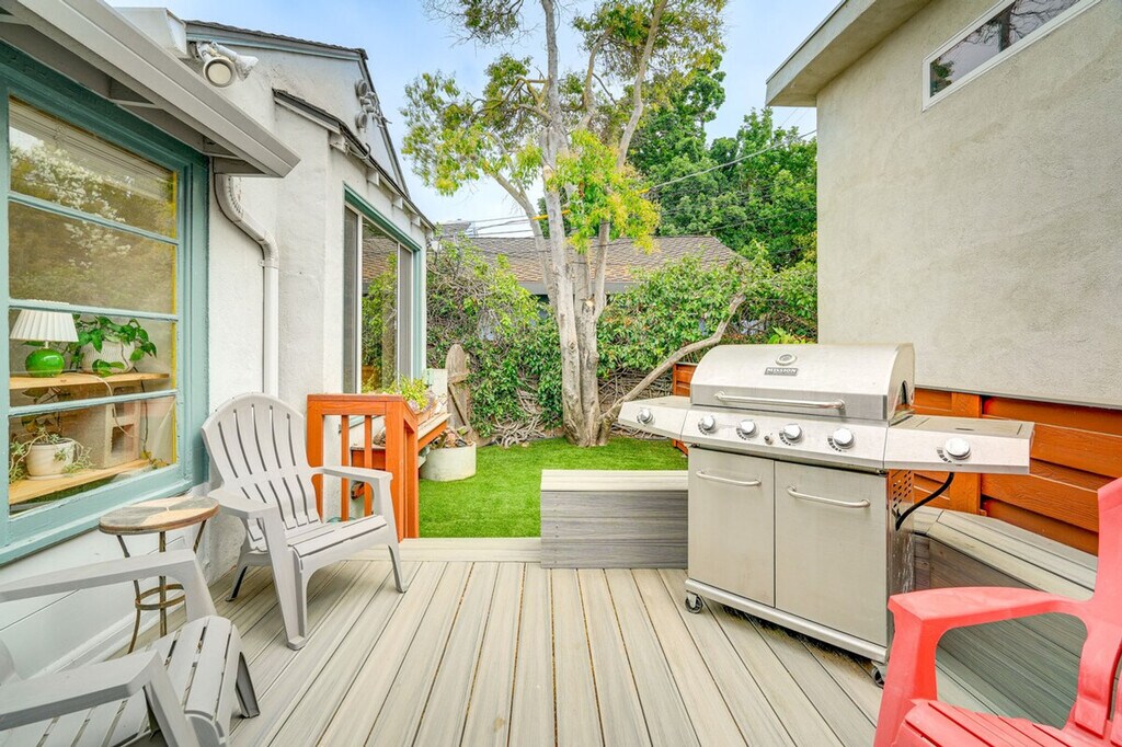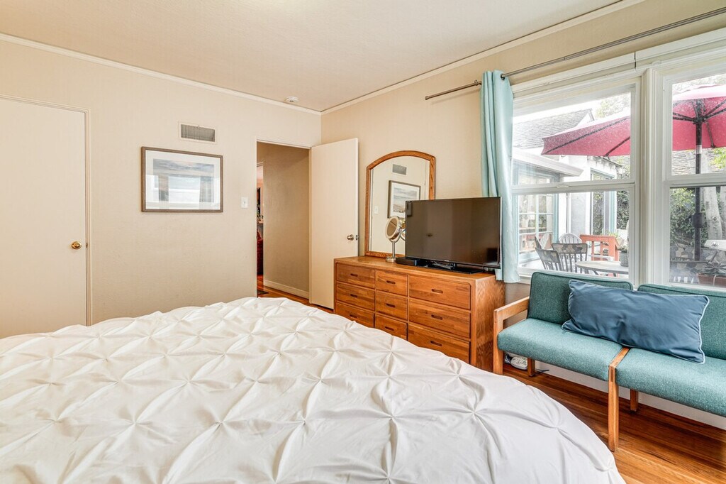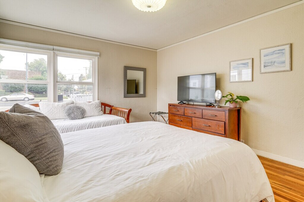 Feel at home in this charming Sunnyvale 2-bedroom, 2-bathroom single-story home, offering a tranquil retreat in the heart of Silicon Valley. With a spacious 1,750 sq ft layout, this property features a newly updated back deck and yard, perfect for relaxation. Enjoy the convenience of at-home laundry and step-free access, all within a short walk to local restaurants, entertainment, and transportation. Designed with comfort in mind, this home includes a fully equipped kitchen with cooking essentials, a drip coffee maker, a tea kettle, and a Crockpot. The indoor living space boasts a large flat-screen TV with Netflix, a furnished sunroom, a formal dining room, and a laptop-friendly desk. Outdoors, the furnished deck with a gas grill and dining table offers a perfect setting for a cookout. Parking is available with space for one vehicle in the driveway and ample street parking. Nestled in a residential neighborhood, this Sunnyvale home provides easy access to Silicon Valley's top attractions, museums, and waterfront parks. A short 40-mile trip will take you to the vibrant cities of San Francisco or Santa Cruz, making it an ideal location for exploring the best of the Bay Area. Guests must be at least 24 years old to book, and additional fees and taxes may apply. Quiet hours are observed from 10:00 PM to 7:00 AM, and there is a detached unit in the back of the property that is not accessible to guests. Smoking, pets, and events or large gatherings are not permitted. Includes a laptop-friendly desk, perfect for remote work needs. Registration Number: 2019-7950 [SI]