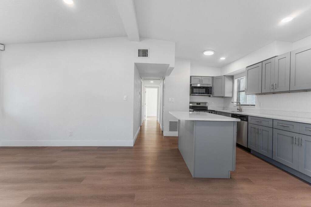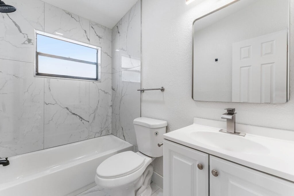 This fully renovated home features a bright open-concept layout and stylish modern finishes throughout. The kitchen showcases quartz countertops, soft-close cabinetry, stainless steel appliances, and a large island that opens to the living and dining areas — ideal for entertaining. Luxury vinyl flooring and recessed lighting add warmth and sophistication. The spacious primary suite offers a sleek ensuite bath with a walk-in shower, while the two additional bedrooms share an updated full bath. A convenient half bath and in-unit washer and dryer add everyday comfort. Step outside to enjoy the screened lanai and expansive fenced yard. With thoughtful design, modern upgrades, and included lawn and pest services, this home offers effortless living in a prime St. Pete location. Landlord pays Pest and Lawncare, Tenant pays other utilities. Welcome to 5100 3rd Ave S — a beautifully renovated home on a spacious corner lot in a quiet St. Petersburg neighborhood. Enjoy a large fenced yard ...