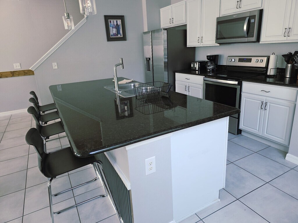 Fully remodeled 4BR/3.5BA home in the popular Compass Bay community. Sleeps 10 comfortably with a Game Room, backyard and modern comforts. Just minutes from Disney, Universal, Epic Universe, SeaWorld, the Convention Center, Lake Buena Vista Outlet, Walmart, top restaurants, and the airport. All bedrooms and three bathrooms are located on the second floor. Ground level has the Kitchen, Living Room, Game Room/Garage, half bathroom. Commercial Vehicles, RVs, Trailers, Buses, Golf Carts or Boats are not allowed at community.