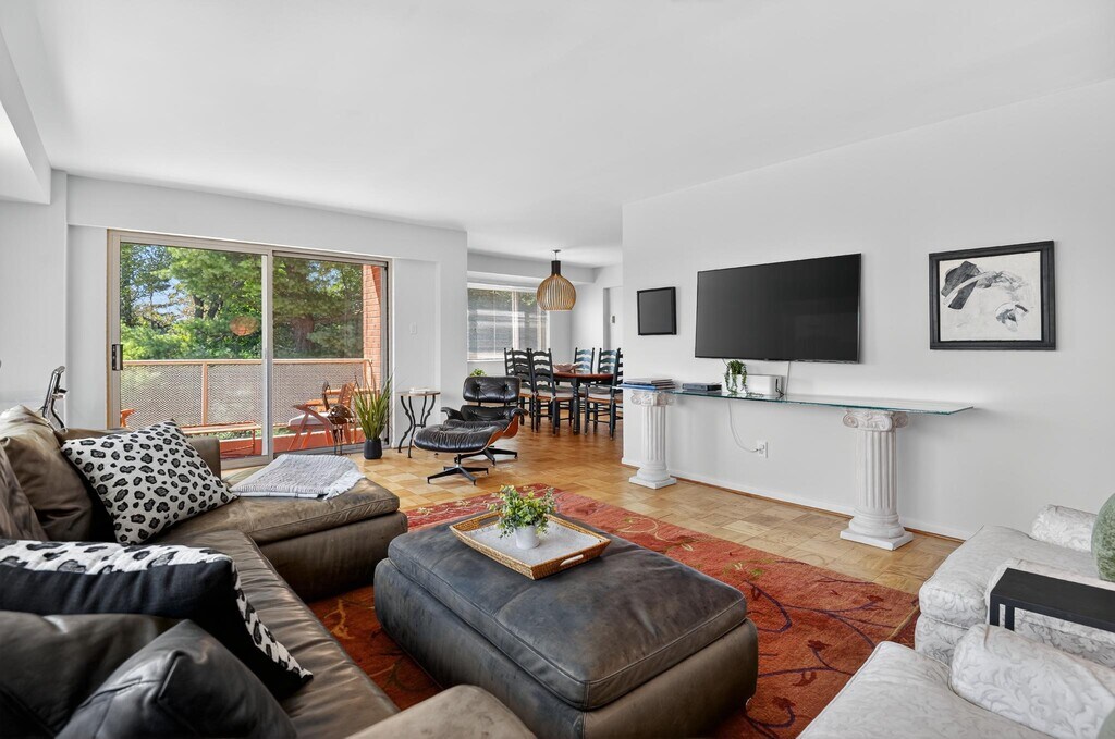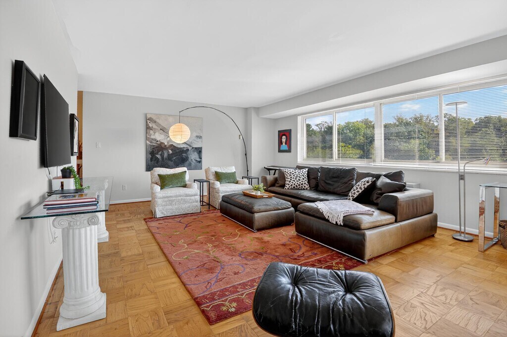 SPACIOUS & FULL OF SUN LIGHT! Discover this rarely available 1,300 sq. ft. corner residence offering 2 bedrooms, 2 full baths, and a wraparound design that floods the home with natural light. Surrounded by lush gardens, mature trees, and direct access to the Capital Crescent Trail, this home combines tranquility with unbeatable access—just minutes to all of Bethesda's dining and shopping, Friendship Heights, and public transportation. Step inside to find a home that has been thoughtfully updated from top to bottom with no detail overlooked. Fully remodeled kitchen with all new cabinetry, stone counters, appliances, lighting, flooring, plumbing, and upgraded 125-amp electrical system. Two updated bathrooms featuring Porcelanosa cabinets, modern sinks, faucets, new toilets, lighting, and refinished tubs. Refinished hardwood floors, fresh paint, new solid wood doors with upgraded hardware, and custom cordless window treatments throughout. Expanded entryway, new balcony, all new wiring, shut-off valves, circuit breakers, and freshly painted throughout. Amenities include an indoor reserved garage space, ample guest parking, storage unit, and a bike room with direct trail access. Plus, the spring brings all the beauty of the cherry blossoms right to your doorstep! The coop fee includes all utilities, maintenance, insurance, lawn maintenance, management, reserve funds, snow removal, taxes, and trash removal. Whether you’re seeking a serene retreat with beautiful views or a lifestyle just steps from Bethesda and Friendship Heights, this home offers the best of both worlds!