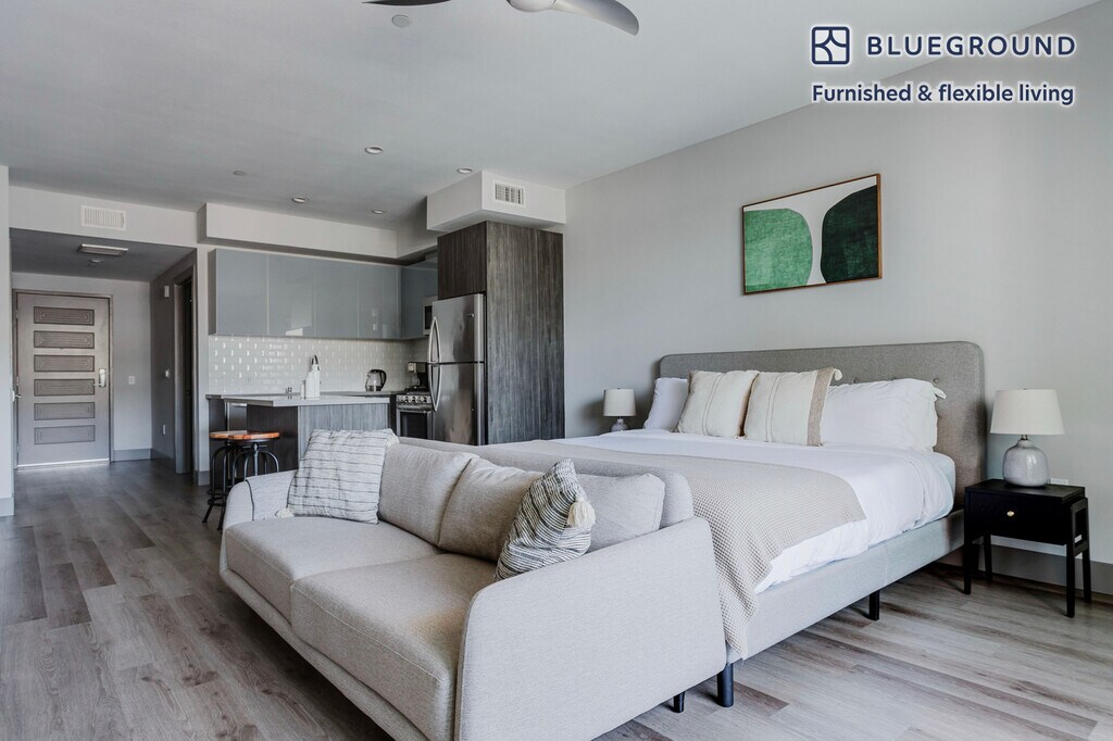 Discover the best of Los Angeles, with this studio apartment in Mid-Wilshire. It’ll be easy to simply show up and start living in this furnished apartment with its fully equipped kitchen, living room, and our dedicated, on-the-ground support. (ID #LAX1224) The advertised rate of $2,310/month is the lowest available price, based on a 6 month(s) and 5 day(s) stay with a move-in date of June 21, 2026. If you’re looking for a 1-year stay, the rate is $2,720/month. Rates vary depending on the duration of stay, season, and other parameters. For exact pricing and additional pricing components, please visit our website and enter your desired move-in and move-out dates. The rate is applicable when billed upfront; it can be higher if billed in multiple payments. Brokers are welcome to reach out. Were you looking for an unfurnished lease? Try Blueground instead and upgrade from unfurnished to furnished living: - Furnished at rates comparable to unfurnished - No setup or furniture costs - save thousands - Move-in ready - save time, just bring your suitcase Designed with you in mind Gorgeous furniture, fully equipped kitchen, smart TV, and a premium wireless speaker are just a few of the amenities you’ll find inside this studio apartment. Ideally located in Los Angeles, you’ll find a lot to love outside as well. When you’re ready to relax, you’ll be happy to discover every Blueground bedroom comes with superior quality mattresses, fully stocked linens, and cozy towels. We handle everything so you can simply show up and start living. This apartment also offers in-apartment laundry. Sleeping arrangements King Bed, 70.8in/180cm Amenities Building amenities unique to this studio apartment include an on-site: - BBQ Area - Dryer - Elevator - Swimming pool - Washing machine - Parking - Pets allowed Arrival and ongoing support The entire apartment is yours to enjoy! Throughout your stay, you’ll have access to our Client Experience team through the Blueground App. You can schedule additional cleanings, submit maintenance requests, and view our neighborhood recommendations with just a few taps. We’ll share all details upon confirmation of your stay. Ideally Located This furnished rental is located in Mid-Wilshire. Often referred to as Midtown by L.A. locals, the neighborhood is a diverse, centrally located district with several museums, including the renowned Los Angeles County Museum of Art (LACMA). The stretch of Little Ethiopia on Fairfax Avenue offers traditional eateries and Pico Boulevard has taquerías and soul-food cafes. Santa Monica and the Hollywood Walk of Fame are both just a 20-minute ride away. Other things to note Building amenities may have an extra cost. This Blueground apartment has flexible lease options, allowing you to book it for one month, a year, or more. Pets are welcome, though weight limits and breed restrictions apply and may incur fees. Parking is offered based on availability and is subject to a fee. We take great pride in ensuring every photo displayed is shot in our own units with our actual furnishings. That said, we regularly refresh our decor and furniture arrangement, which may differ from what’s pictured. [SI]
