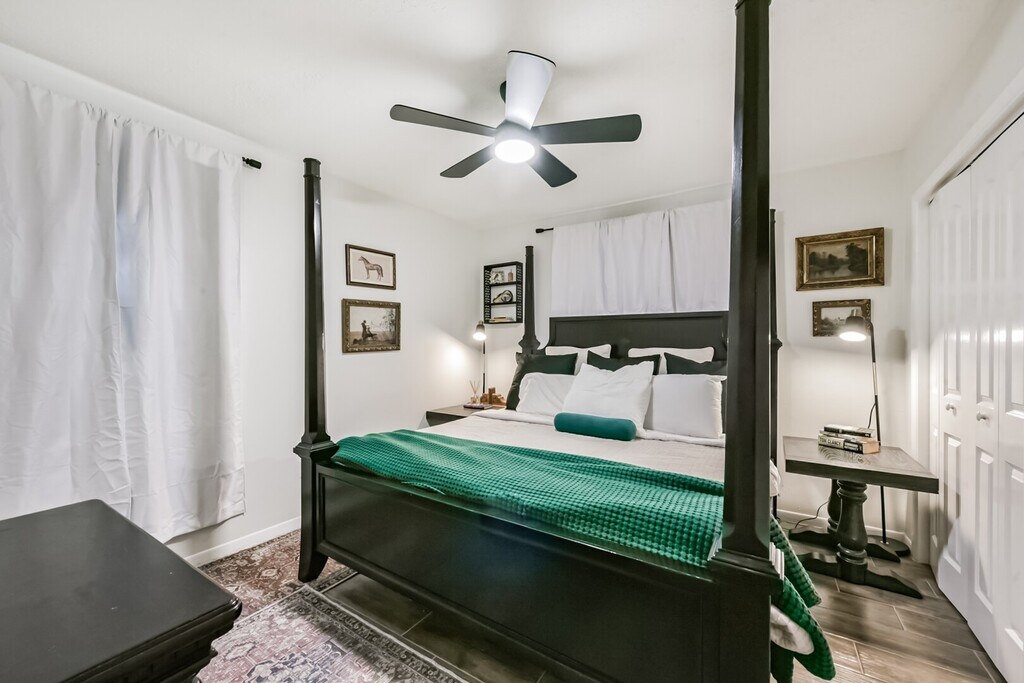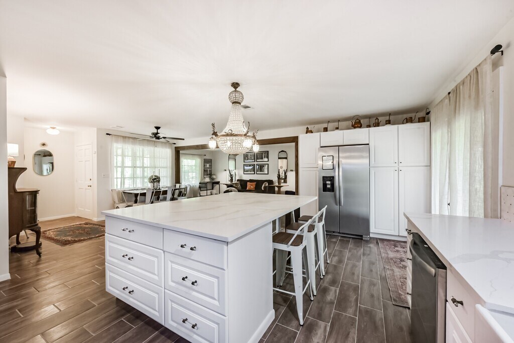 Nestled in the heart of nature with 7 private acres,and easy access to the heart of Houston via 288 less than an hour. This fully furnished (w/all utilities included) home has been lovingly remodeled summer 2025 to offer a seamless blend of rural beauty and modern elegance. Inside,the heart of this french inspired farmhouse is a fully stocked island kitchen with seating for 8 people and 5 additional spaces at the breakfast table. 1. King sized bed in the primary / master suite with adjoining bathroom 2. King sized four poster bed in secondary bedroom 3. Two Twin sized European vintage iron and brass single beds in third bedroom. In addition to the bedrooms,there is a queen sized sleeper sofa in the living area. The master retreat is an absolute highlight,featuring a luxurious soaking tub perfect for long,relaxing evenings. This home offers a rare combination of rural charm and refined elegance—your own private sanctuary,designed for relaxation & tranquility Owner/agent MLS# 37354067