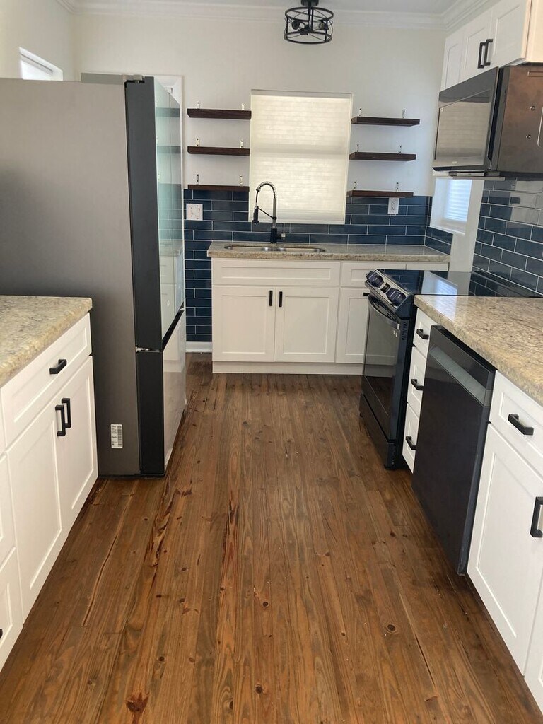 Welcome to this newly renovated home in the historic Northwood neighborhood of West Palm Beach, Florida. With two bedrooms and two bathrooms in the main house, a garage apartment with a full bathroom and a spacious backyard, this home is the perfect place to make memories with friends and family. The main house features two bedrooms and two bathrooms, as well as a large kitchen and living space. The backyard is perfect for enjoying a glass of wine on a warm summer evening. The the spacious garage apartment is connected to the main house by a screened in walkway and is also newly renovated. The backyard is large and perfect for barbecues, outdoor movie nights, and more! The house is located minutes away from downtown West Palm Beach, with easy access to shopping, dining, and entertainment. Come and experience the best of West Palm Beach living in this beautiful, newly renovated home!