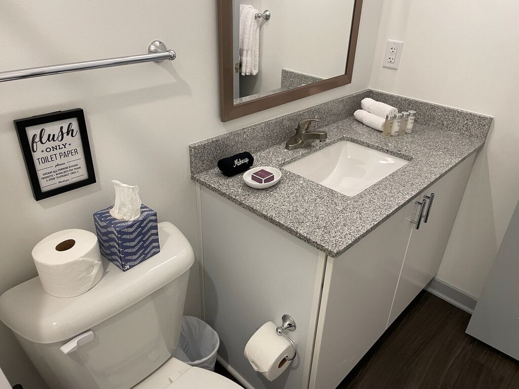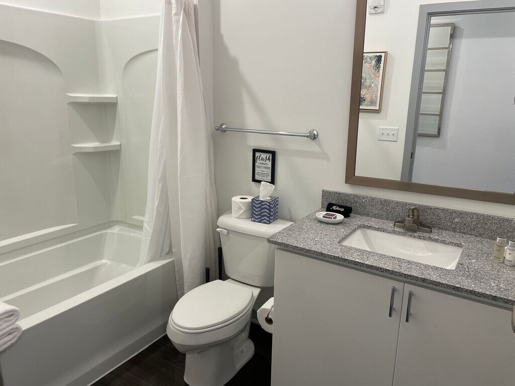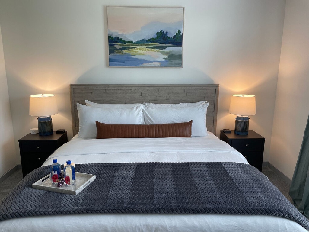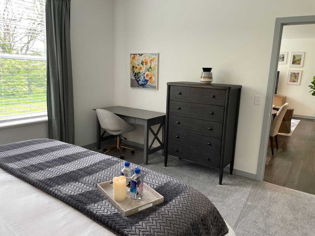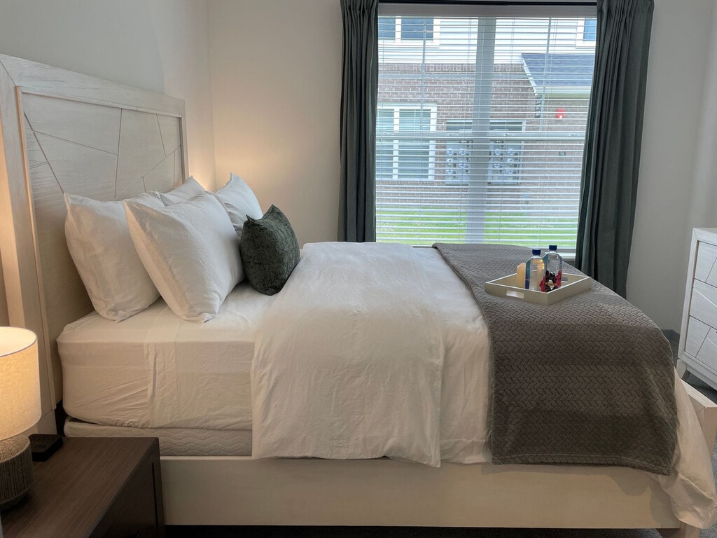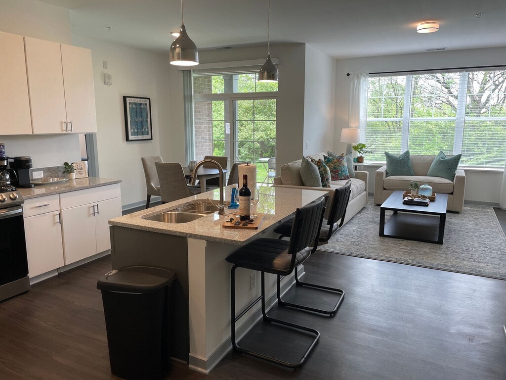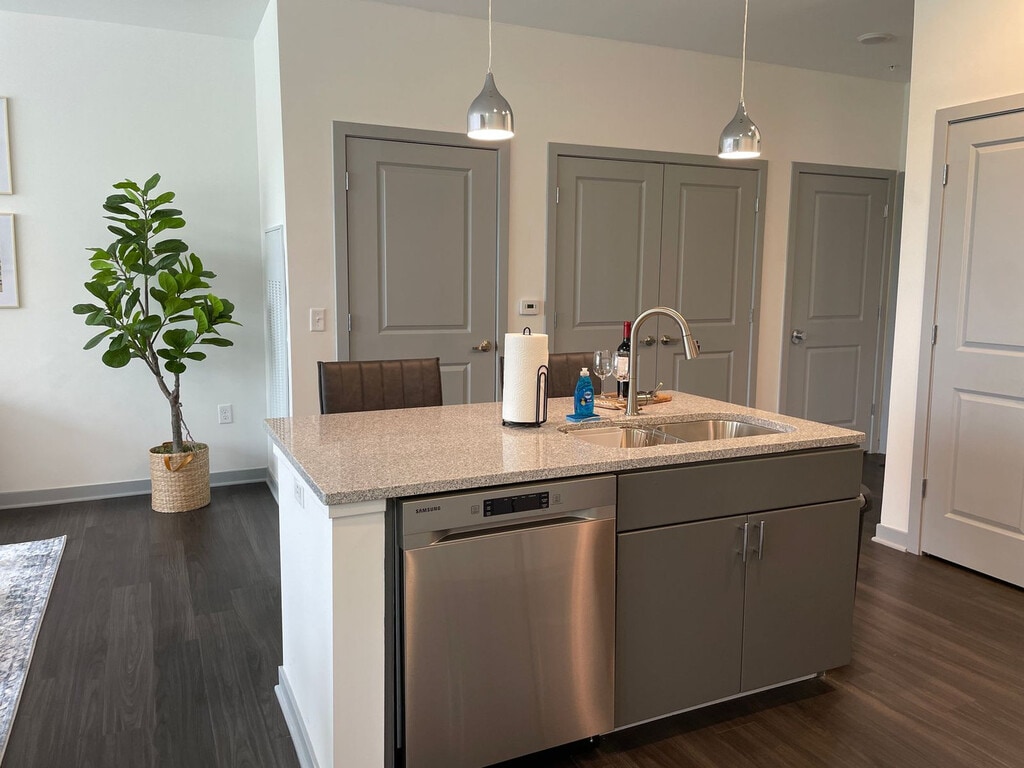 Feel at home in this beautiful apartment located on the first floor of the brand new Kensington At Riggins Run gated community. This open-concept living area features lots of windows and natural light. The spacious kitchen, living room, and dining area offer plenty of seating. A small laundry room with a washer and dryer is located off the kitchen. The patio, accessed via sliding glass doors off the living room, features two comfortable patio chairs and a small table. The master bedroom has a walk-in closet and an en-suite full bath. The second bedroom is at the end of the hallway and features a walk-in closet. The second full bathroom is down the hall before you reach the second bedroom. The apartment also features comfortable beds with Frette linens, stunning Arhaus furniture, kitchenware, cleaning supplies, fast Wi-Fi, and a 65" smart TV with DirecTV. Parking is free and easy for up to two cars. Access to the gym and indoor pool is included. Up to two dogs or cats are welcome with a maximum weight of 25 lbs. No commonly restricted breeds are allowed. A copy of recent vet records will be required for dogs, as well as an additional $10/night pet fee for any pets. This apartment is situated within a beautiful community that just opened in early 2023. The community is modern, clean, and upscale, located in a quiet part of the Dublin/Hilliard area, one of the most desirable suburbs of Columbus. You'll love being just a few minutes from all the shopping and dining options of Bridge Park and all the other attractions of this area. Commuting from here to any other part of Columbus is easy thanks to the proximity to the I-270 outer belt. This is a 100% smoke-free community, so no smoking of any kind is allowed anywhere, including the private patio, building breezeways, and parking lots. ID verification will be required before your arrival. After you book, a link will be sent to upload a photo of your ID and take a selfie. The software runs a quick background check, then sends your check-in details. [SI]