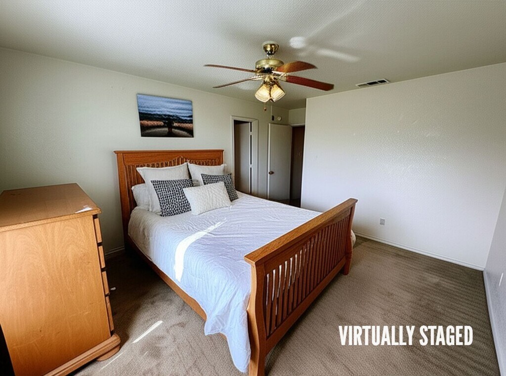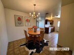 View 360 Virtual Tour: This duplex resides in the Bridgewood Subdivision and has 3 bedrooms, 2 bathrooms, a 1 car garage, and 1,290 square feet of space. You'll also find that it has a spacious covered porch, perfect for relaxing on after a long day at work. The backyard is fenced and has a covered patio. The kitchen is complete with a double sink with disposal, stove, refrigerator, dishwasher, and a door leading to the covered patio. The dining area is very spacious and has a built-in desk for a studying. The secondary bedrooms are a great size, and the primary bedroom has a walk-in closet. Disclaimer: The furnishings or enhancements shown are AI-generated and intended for inspiration only. They may not reflect the actual scale, condition, or current features of the property.