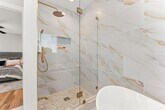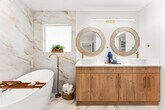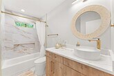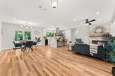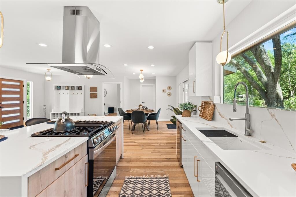 Step into the epitome of modern luxury in this meticulously redesigned 3-bedroom, 3- full bath home that beautifully blends elegance with comfort. Completely transformed from top to bottom, this single-level residence offers a stunning open-concept layout filled with natural light, designer finishes, and thoughtful details throughout. The expansive living area invites gatherings around the contemporary fireplace, while wide-plank wood floors and luxe lighting elevate every corner. At the heart of the home, the chef’s kitchen is a true showpiece—featuring custom Italian-style cabinetry, top-of-the-line appliances including wine fridge, a double waterfall island, and highend quartz countertops that make both daily living and entertaining a dream. The spacious primary suite is a private retreat, offering a fully built-in walk-in closet and a luxurious 5-piece en-suite bath complete with a soaking tub, double vanity, and walk-in shower. Two additional bedrooms, each with their own beautifully appointed full bathrooms, create a perfect in-law layout, providing flexibility for guests, family, or a dedicated home office. Step outside to a private backyard oasis,ideal for outdoor dining, morning coffee, or unwinding in the fresh air. With allnew systems, spray foam insulation, and a metal roof, this residence combines timeless style with modern efficiency for a truly move-in-ready experience. Walking distance from the park, and Mueller, and less than 20 minutes from Downtown Austin, the domain, and Austin Bergstrom Airport.