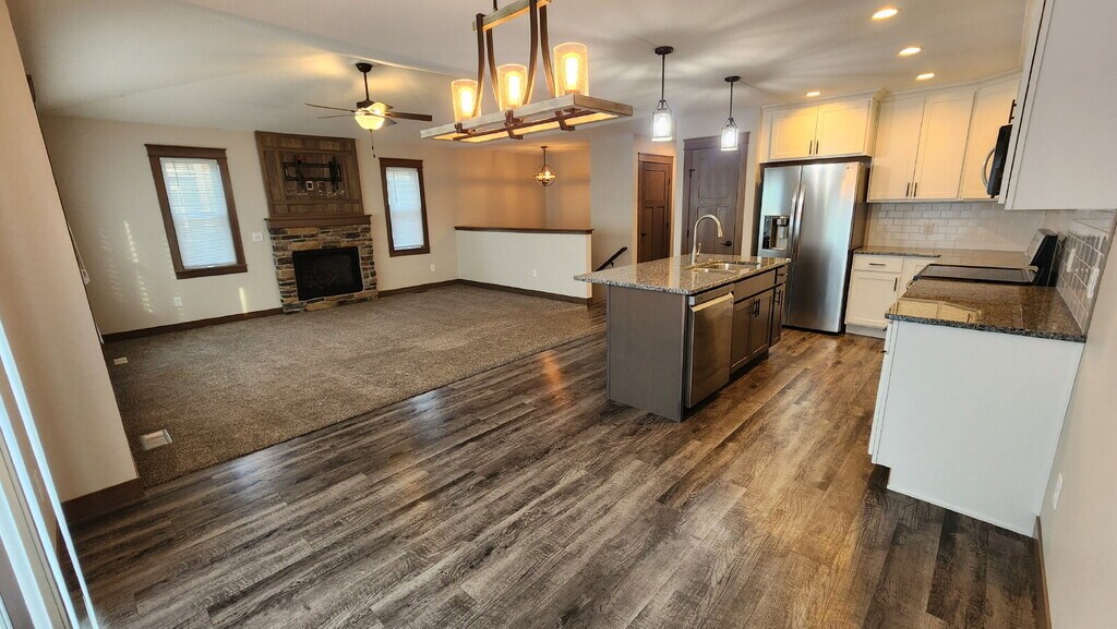 This spacious split-level condo offers comfort, convenience, and beautiful views in a desirable location. Upstairs, the open layout includes a bright living room and dining area with a deck that overlooks a peaceful pond and walking trail with a charming bridge. The modern kitchen is designed with a pantry, an island, stainless steel appliances (refrigerator, stove/oven, dishwasher, over-the-range microwave, garbage disposal), soft-close drawers, under-cabinet lighting, and plenty of cooking space. Also on this level is a laundry room with washer and dryer included, the first full bathroom, the first bedroom, and the spacious 2nd bedroom master suite with private 2nd full bathroom with walk-in closet. The lower level features a large family room with walk-out access to a private patio, a 3rd full bathroom, a 3rd bedroom, plus a utility room and extra storage space. Additional highlights include a two-car attached garage, gas heat, central air, and a professionally maintained yard with a sprinkler system. Lawn care, snow removal, and sprinkler maintenance are all included in rent. Pets are welcome. Monthly Rent and Charges $1,995 Rent with lawn care, snow removal, and sprinkler system maintenance included $15 Resident Benefit Package with credit building, tenant portal, and many more benefits! $20 No Renter's Insurance, only applies if you do not provide the required proof of renters insurance Pets Accepted Dogs and cats, maximum of 2 pets, must be spayed or neutered, must be 1 year or older. For our pet policies and charges, please visit: Application Application Fee is $20 per applicant. Anyone 18 years or older must apply. Please view our screening criteria before applying at