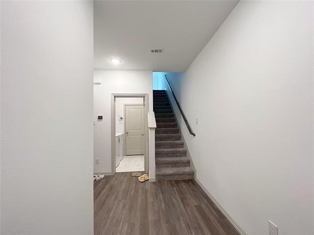 Available on April 1st. Park View. Introducing a stunning new two-bedroom, two-bathroom townhome with a one-car garage in the highly sought-after Heritage Subdivision community of Haltom City! Enjoy the convenience of being in close proximity to Hwy 820 and 377, just minutes away from DFW airport and Highway 35. The townhome features a thoughtfully designed floor plan with a bedroom and full bathroom on the first floor, while the second floor boasts a master bedroom, master bathroom, living room, and kitchen. The kitchen is equipped with high-end features such as quartz countertops, a large island, a cooktop with oven, and a microwave. Additionally, this townhome is equipped with a smart thermostat, fire sprinkler system, tankless water heaters, and a utility room. Located facing a park, this townhome is perfect for those who appreciate the beauty of nature and want to live in a serene and peaceful environment. Including washer, dryer, and fridge.