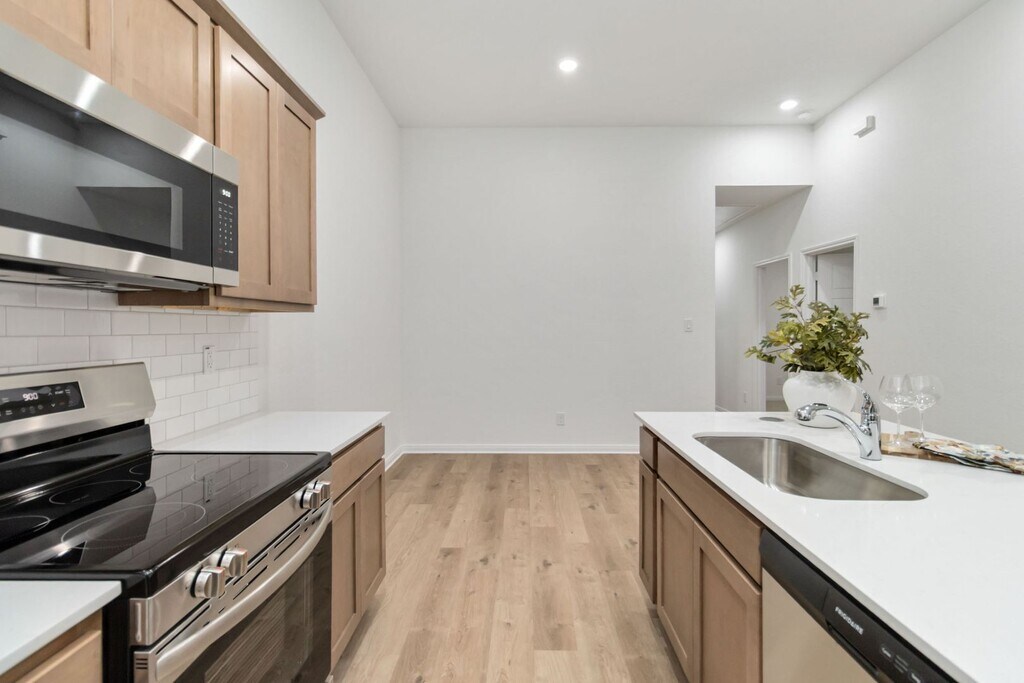 Welcome to 5107 Cindy Branch — a brand-new, never-lived-in one-story townhome offering modern finishes, functional design, and low-maintenance living. This thoughtfully designed home features high ceilings and an open-concept layout that creates a bright and spacious feel throughout the main living areas. The kitchen is a standout with brand-new appliances, abundant cabinet space, and generous counter space — perfect for cooking, entertaining, and everyday convenience. The primary living areas flow seamlessly, making the home feel both comfortable and efficient. The private fenced yard offers rare outdoor space for a townhome — ideal for pets, relaxing evenings, or weekend gatherings. A two-car garage provides secure parking and additional storage. With contemporary finishes, energy-efficient construction, and the convenience of single-story living, this home is perfect for those looking for comfort without the upkeep of a larger property. Located in a growing area with easy access to major roadways, shopping, dining, and everyday essentials, this home combines modern style with practical living.