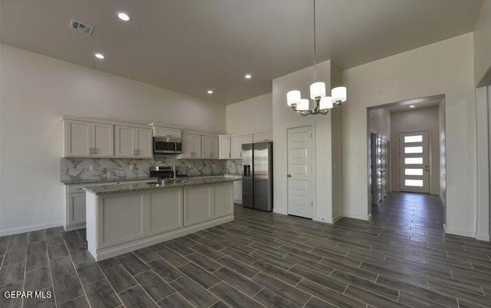 Experience modern living in this stunning 4-bedroom,3-bathroom home,offering 1,941 square feet of well-designed comfort. At its center is a stylish,open-concept kitchen—ideal for gathering and entertaining—featuring abundant storage and all essential appliances. The expansive primary bedroom serves as a peaceful escape,complete with a generous walk-in closet and a refined ensuite showcasing dual sinks and a walk-in shower. Three additional spacious bedrooms ensure plenty of room for everyone. Enjoy the convenience of an included washer and dryer,along with a low-maintenance yard. Step into the large,private backyard—an ideal,secure area for pets. Located in the Campos del Sol community,you'll also have access to outstanding amenities such as parks,hiking and biking trails,a designated food truck area,and school bus stops.