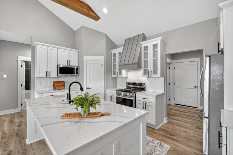 Property Id: 2225196 Discover your dream home nestled on a quiet 1/3 acre cul-de-sac lot. This stunning property boasts over 2500sf of meticulously finished space, plus an opportunity to finish an additional 600sf in the walk-out basement. The heart of the home features a dramatic 20ft vaulted ceiling with exposed beams, bathing the open-concept living area in natural light, complemented by durable LVP flooring throughout. The wrap-around kitchen is a chef's delight, and a separate laundry room adds convenience. Step outside to a private oasis. The 12x18 covered composite deck, also with a vaulted ceiling, is perfect for alfresco dining. Below, a stamped concrete patio and full landscaping, including a raised garden and irrigation system, create a serene setting. Inside, luxury continues with a whole-home filter and water softener system. The 5 bedrooms and 3 bathrooms showcase thoughtful upgrades, including custom wood closets. The epoxy garage floor adds a finishing touch to this exceptional property.
