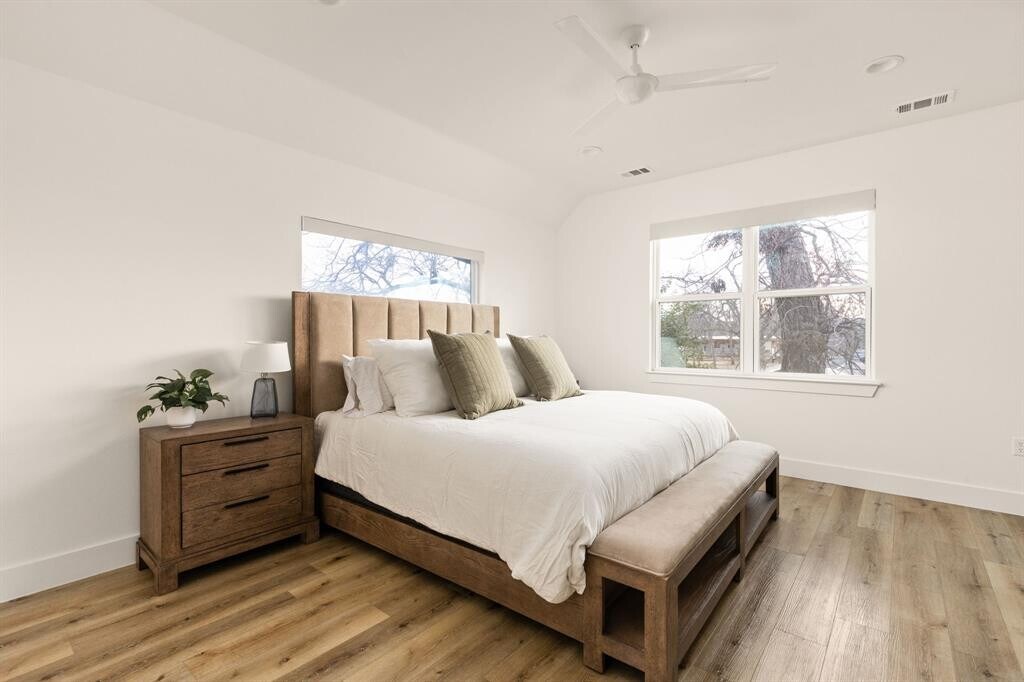 Enjoy the best of East Austin living in this gorgeous, detached home for lease—designed to live like a single-family residence. Built in 2023, this light-filled home offers over 2,100 SF of thoughtfully designed space, blending modern finishes, flexible living areas, and everyday functionality. The first floor welcomes you with a convenient powder bath near the entry and opens into a spacious kitchen featuring sleek finishes, stainless steel appliances, contemporary tilework, and designer lighting. The main living area flows seamlessly to a private, fenced backyard—perfect for relaxing, entertaining, or enjoying indoor-outdoor living. Upstairs, the second level offers two secondary bedrooms with a shared full bath, while the sunlit primary suite features oversized windows, a beautifully finished en suite bath, and an expansive walk-in closet. The third floor provides incredible flexibility with a full bath and two additional spaces—ideal for home offices, guest accommodations, a fitness room, or additional living areas, making it perfect for tenants seeking room to spread out or work from home. Additional highlights include a gated driveway, one-car garage, and a low-maintenance lifestyle. Conveniently located near East Austin favorites like Hi Sign Brewing, Central Machine Works, De Nada, Sawyer & Co., Justine's, Jacoby's, and popular fitness spots such as Jiujitsu Parlor and Lift ATX. Please note: some exterior photos have been digitally enhanced to illustrate potential landscaping. MLS ID 8268148