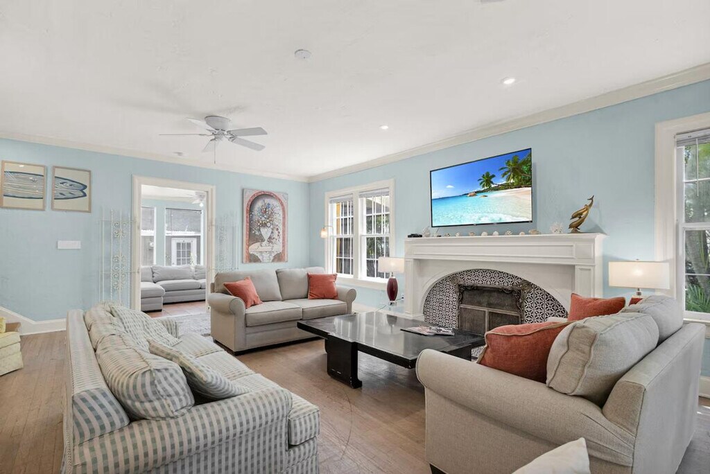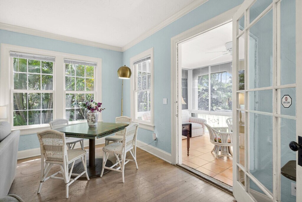 Feel at home in this beautiful historic house with a lovely garden. This spacious house, dating back to 1926, has been carefully renovated and offers an elegant yet laid-back atmosphere. The house is surrounded by a spectacular garden with old palm trees, bananas, and a huge mango tree, creating a tropical haven. You have access to the garden and sitting area, as well as the outdoor shower located between the main house and the back house. You will be sharing the walkway with guests in the back units, should they be rented to a different party. Located in the historic and vibrant neighborhood of Old Northwood, the house is situated near the end of a quiet cul-de-sac at the corner of 28th Street and Spruce. The main street with the post office and restaurants is just four blocks away. It's a short drive across the bridge to Palm Beach, Worth Avenue's world-renowned stores, and the Atlantic beaches, as well as downtown West Palm Beach, the airport, and the train station (Tri Rail to Fort Lauderdale, Miami, etc.). It's an easy walk to the intracoastal waterway, the Palm Beach Maritime Museum (from where you can take a water taxi to Peanut Island), and Currie Park with its bike paths, tennis courts, and fantastic views. Within two miles, you'll find City Place with its shopping, restaurants, theaters, sidewalk cafes, nightclubs, and boutiques; Clematis Street's shopping and nightlife, the Kravis Center for the Performing Arts, the Norton Museum, and the Palm Beach County Convention Center. The vibrant shopping area of Northwood Village is four blocks away, lined with antique stores and numerous restaurants, including the upscale Cafe Centro. Don't miss the monthly Art & Wine promenade. No drugs or smoking are permitted. Parties or loud music are not allowed. Please make sure to keep the garden gate and apartment door locked at all times. Registration Number: 000032495, [SI]