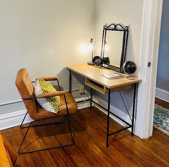 Property Id: 1960125 This chic 1-bedroom, 1-bathroom upstairs apartment is ALL INCLUSIVE and perfect for mid/long-term stays. It features a queen bed with a plush mattress topper, a queen air mattress, and a small convertible bed for added flexibility. The fully stocked kitchen includes pots, pans, utensils, dishes, and small appliances like an espresso maker, coffee maker, microwave, griddle, oven, and toaster. Starter supplies of coffee, tea, paper products, cleaning supplies, & laundry essentials are included. The living area has a cozy sofa, recliner, and work desk, with high-quality linens and towels provided. Relax on the private balcony with outdoor furniture and a water feature. Utilities, high-speed WiFi, and streaming services are included, and a washer/dryer is in the unit. Located near hospitals, the arena, restaurants, and parks, it's ideal for traveling professionals and remote workers. Security includes surveillance cameras, 24/7 lighting, fencing, and smart locks for peace of mind.